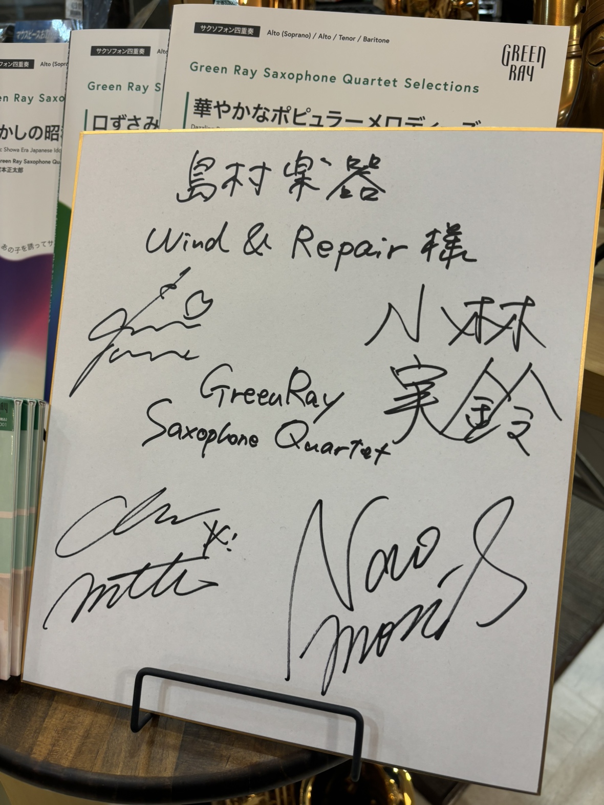 CONTENTS店頭展示品サイン展示中です!ご来店お待ちしております!プロフィール Green Ray Saxophone Quartet(グリーンレイ サクソフォンカルテット) 世界屈指のサクソフォーン奏者雲井雅人氏に師事する4人が集まり2009年に結成。コンサートではクラシック、ポップスを中心と […]