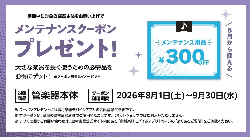 期間中、管楽器本体をお買い上げのお客様に「メンテナンスクーポン」をプレゼント!