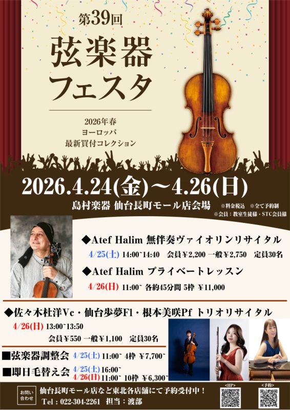 弦楽器フェスタ2026 in 仙台 4/24(金)~26(日)開催!