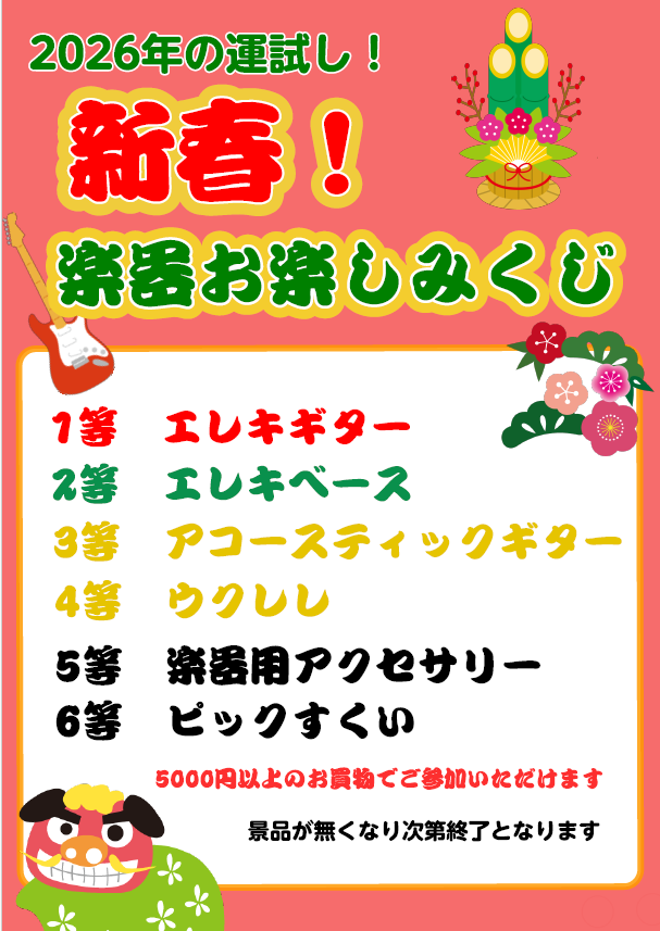 ※ギター・ベース・ウクレレ・楽器お楽しみくじは2026/1/1からのキャンペーンとなっております。