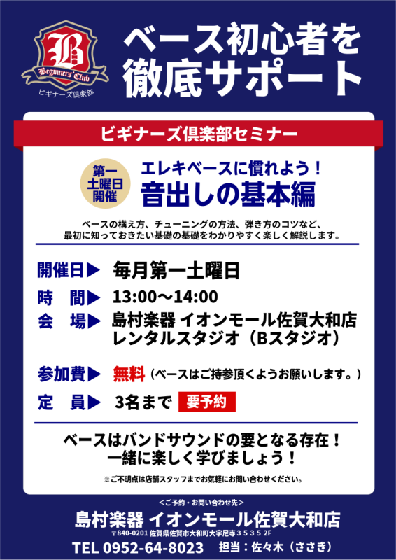 島村楽器スタッフによる3日間の特別ベースセミナー!!