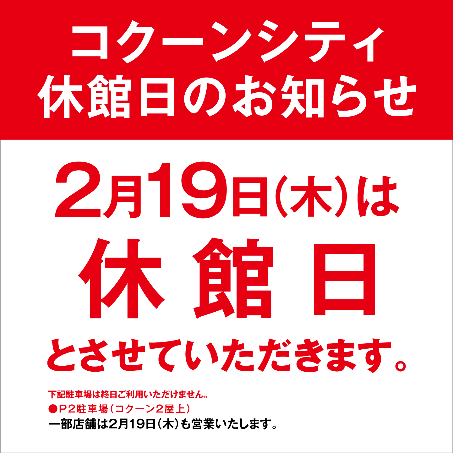 休館日のお知らせ 2026年2月19日(木)