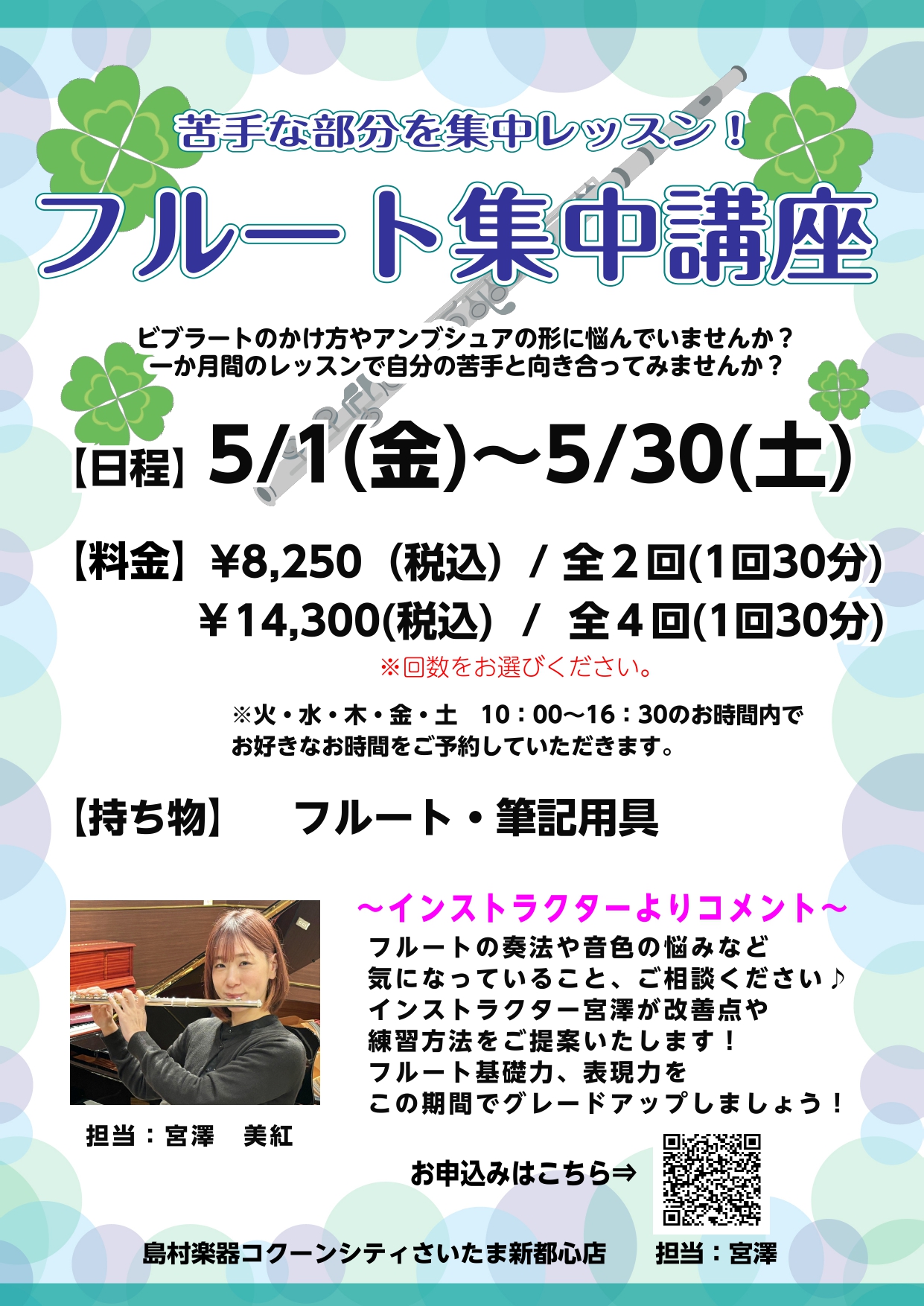 5月🍀フルート集中講座のお知らせ♪【24時間web受付中!】