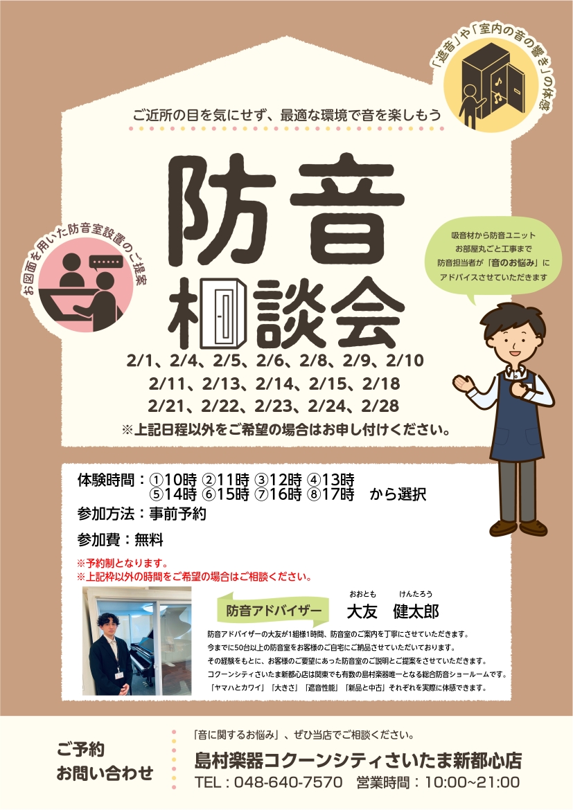 【防音ショールーム埼玉 in コクーンシティ】『防音個別相談会』2026年1月・2月開催のご案内 予約受付中!