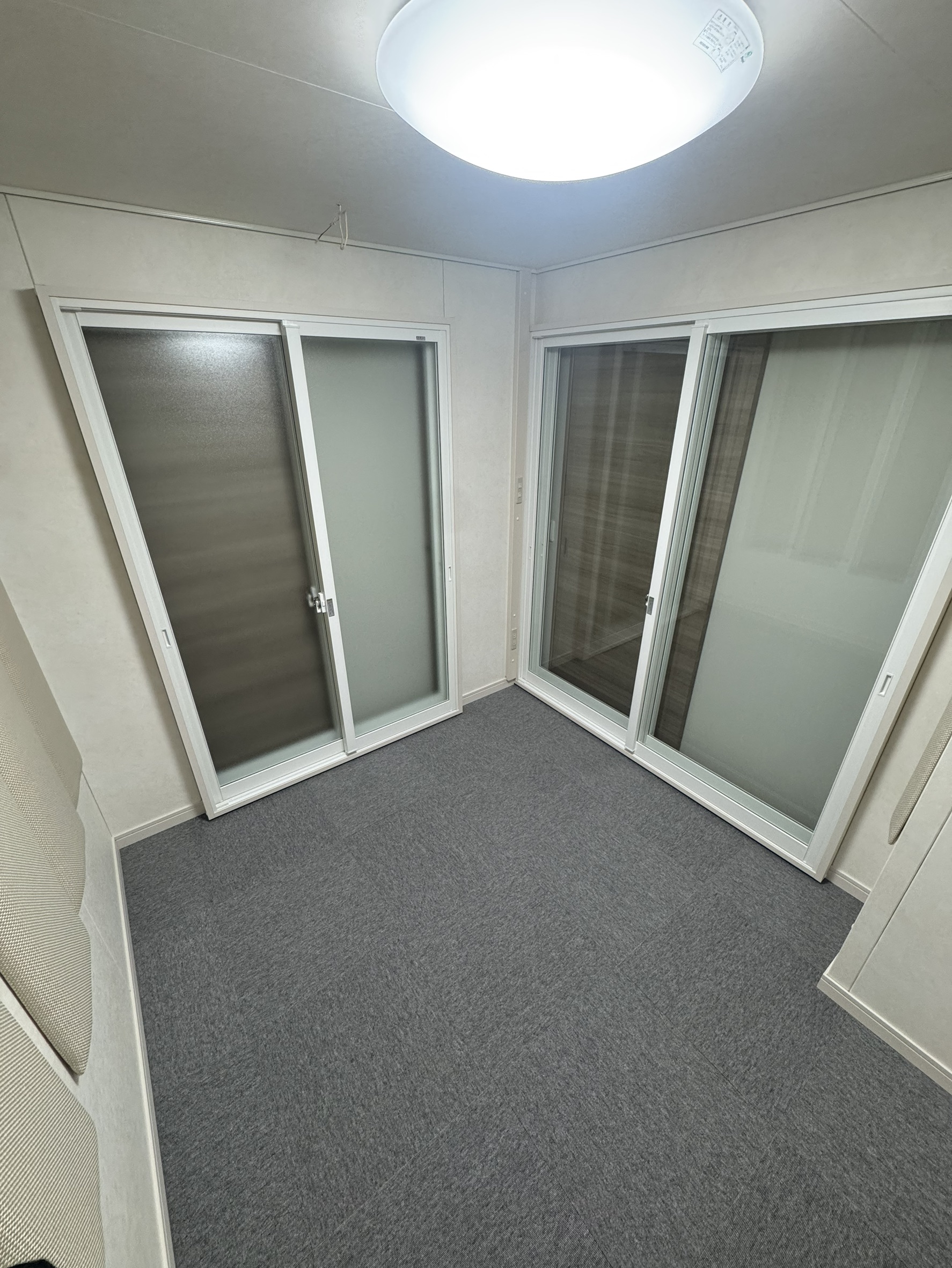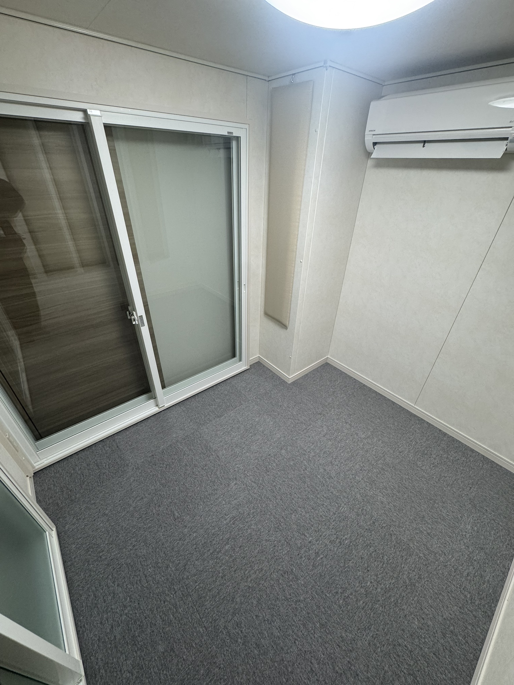 防音ドアとテラスサッシ(Lサイズ)とテラスサッシ(Mサイズ)仕様。テラシサッシ(すりガラス仕様)にする事で収納スペースへのアクセスも可能に!