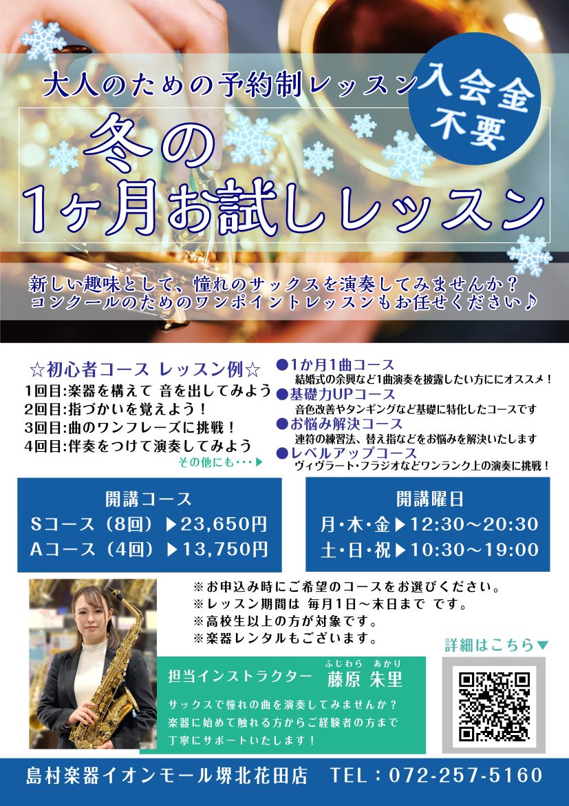 そんなあなたにピッタリのサックスサロン"冬の1ヶ月お試しレッスン"のご紹介です!