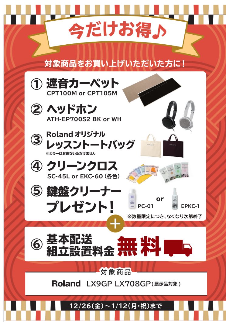| Roland/LX708GP・LX9GP | 遮音カーペット、ヘッドホン・Rolandオリジナルレッスントートバッグ・ クリーンクロス・キーウォッシュ・基本組立設置料金料無料! |
