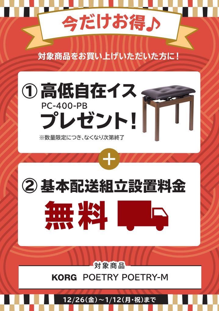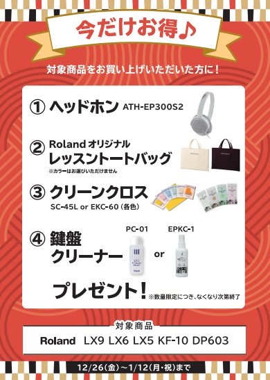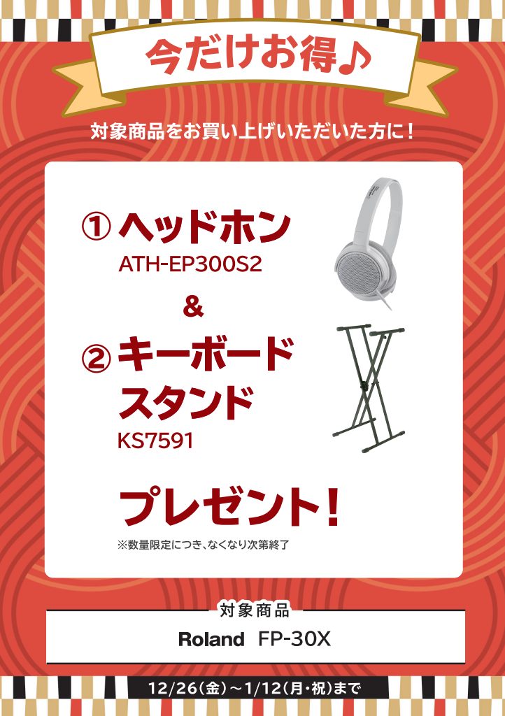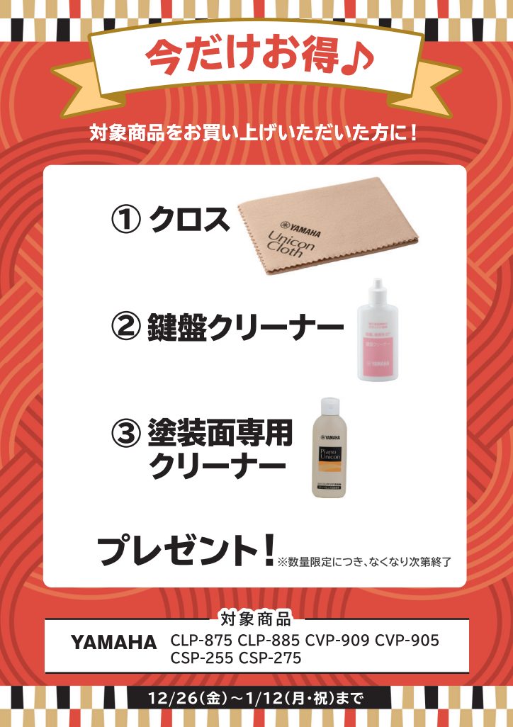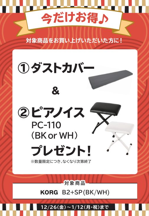 🎹【電子ピアノ】🎹2025年12月26日(金)~2026年1月12日(月祝)まで期間限定・年末年始フェア2026開催!フェア期間中に対象の電子ピアノをご購入いただいたお客様へ音楽ライフがさらに楽しくなる素敵なプレゼントをご用意しております♪