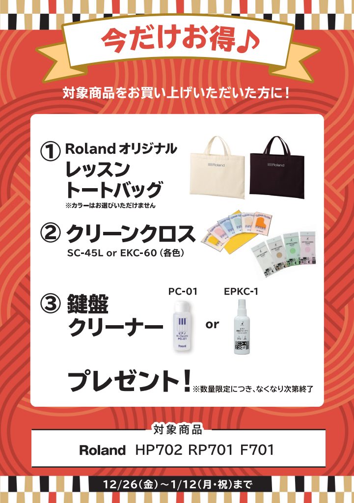| Roland/HP702、RP701、F701 | Rolandオリジナルトートバッグ、クリーンクロス、キーウォッシュ |