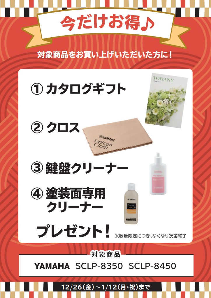 | YAMAHA/SCLP-8350・SCLP-8450 | カタログギフト、クロス、鍵盤クリーナー、塗装面専用クリーナー |
