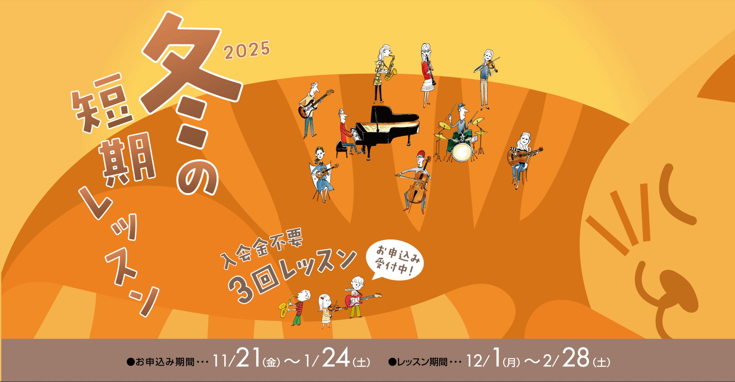 【音楽教室】入会金不要!3回レッスン!冬の短期レッスンで音楽を趣味に《24時間Web受付中!》