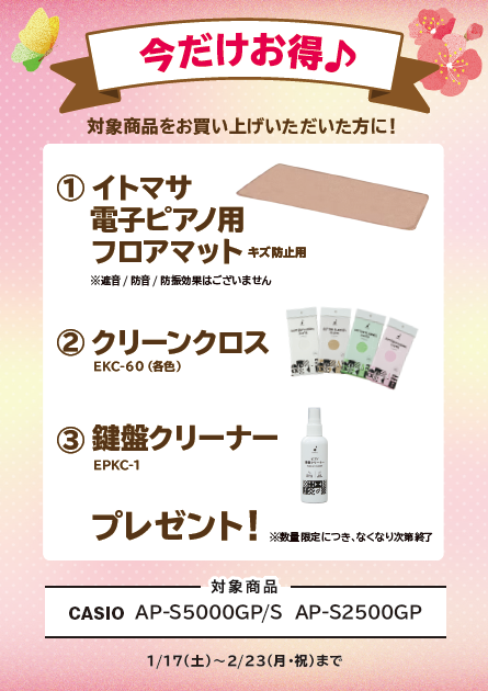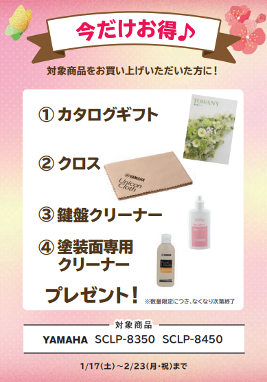 🎹【電子ピアノ】🎹2026年1月17日(土) ~ 2026年2月23日(月・祝)まで期間限定・初春ピアノフェア2026開催中!フェア期間中に対象の電子ピアノをご購入いただいたお客様へ音楽ライフがさらに楽しくなる素敵なプレゼントをご用意しております♪