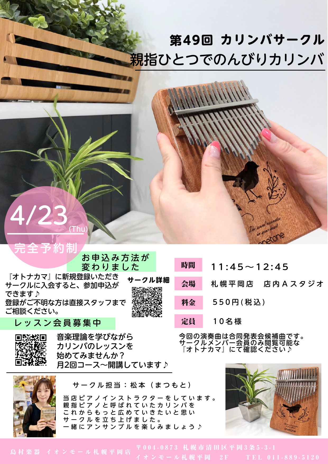 ![CONTENTS3/19(木)『花は咲く』を演奏しました集合写真次回サークル日程3/19(木)『花は咲く』を演奏しました 皆さんこんにちは~🌸もうすぐ4月。しだいに春に近づき暖かくなるいい季節ですね。今回のサークルは9名の方にご参加いただきました!前回は大雪で少なかったので今回は久しぶりに多くのメン […]](https://www.shimamura.co.jp/shop/sapporo-h/wp-content/uploads/sites/10/2025/06/20250619-313498afa9354410dd863eab075ede70.jpg)