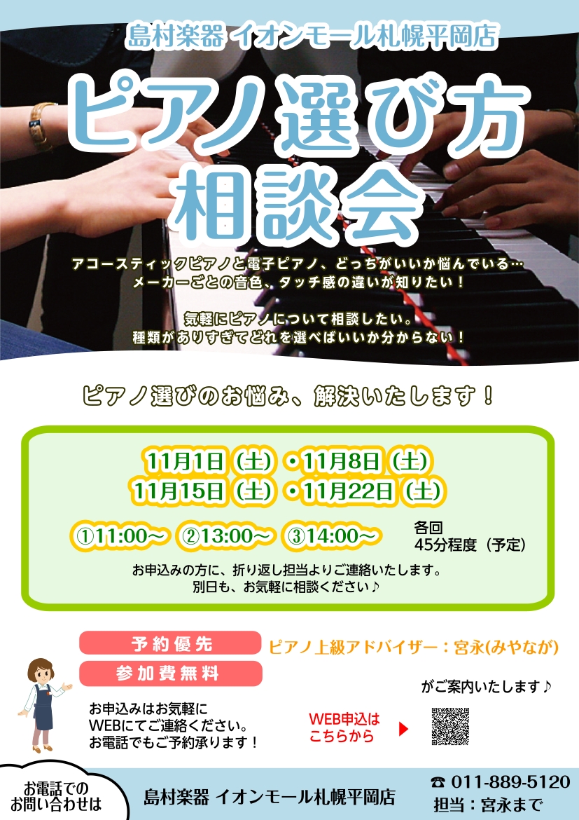 ピアノ上級アドバイザーによる【ピアノの選び方相談会】を、イオンモール札幌平岡店にて定期開催いたします!