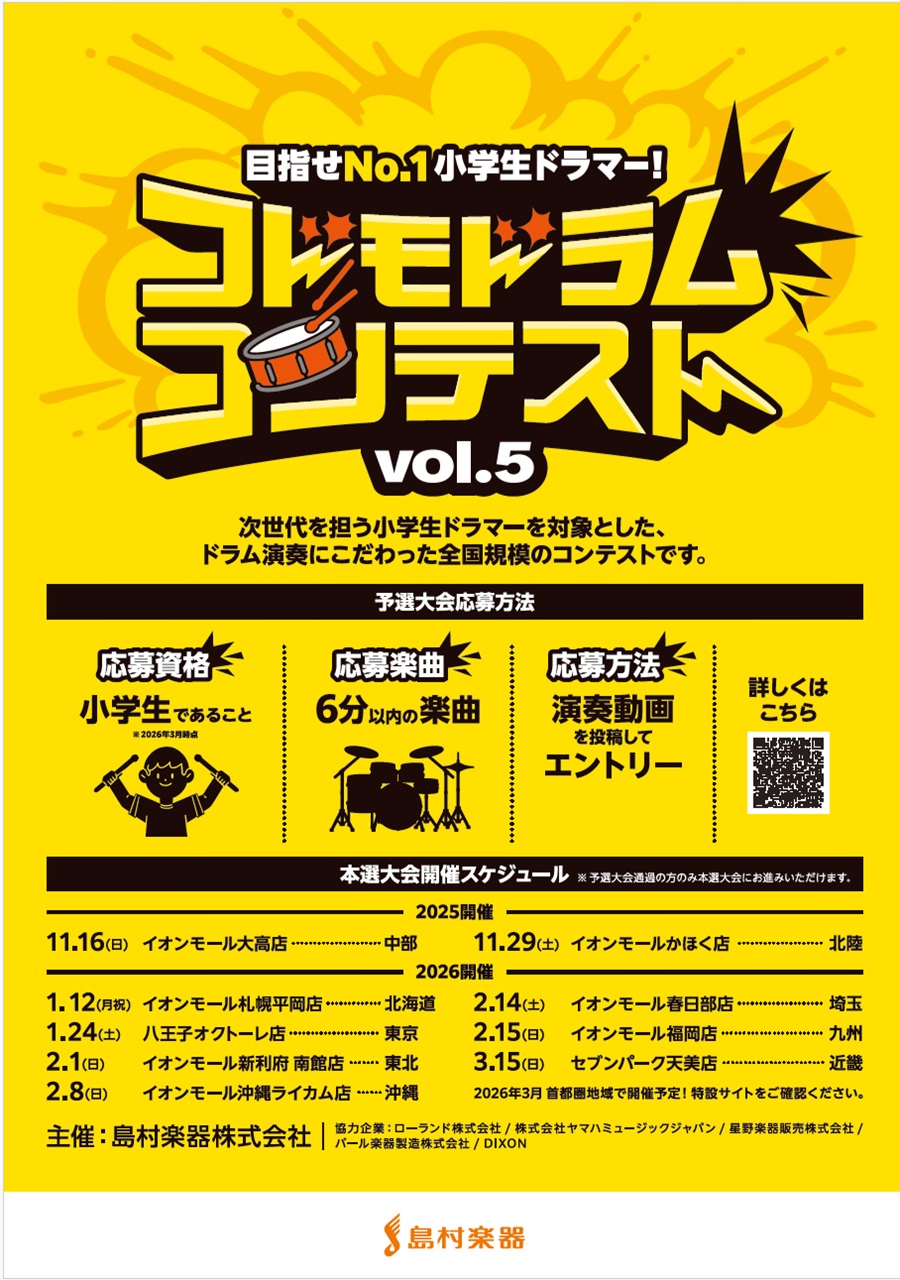 「コドモドラムコンテスト」は、次世代を担う小学生ドラマーのために、ドラム演奏にこだわった全国規模のコンテストです。 北海道での開催は今回で3回目となり、動画予選審査を通過した全15名のキッズドラマーの皆さまにご出演いただきます! 全力でステージに挑むキッズドラマーたちへ、温かい応援を届けましょう!  […]