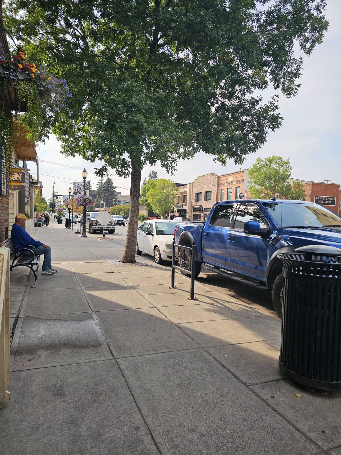 ボーズマンのダウンタウンを歩いてお店に向かいます。街並みが美しく、落ち着いた雰囲気です。大きいワンコがいっぱいいて癒されます。