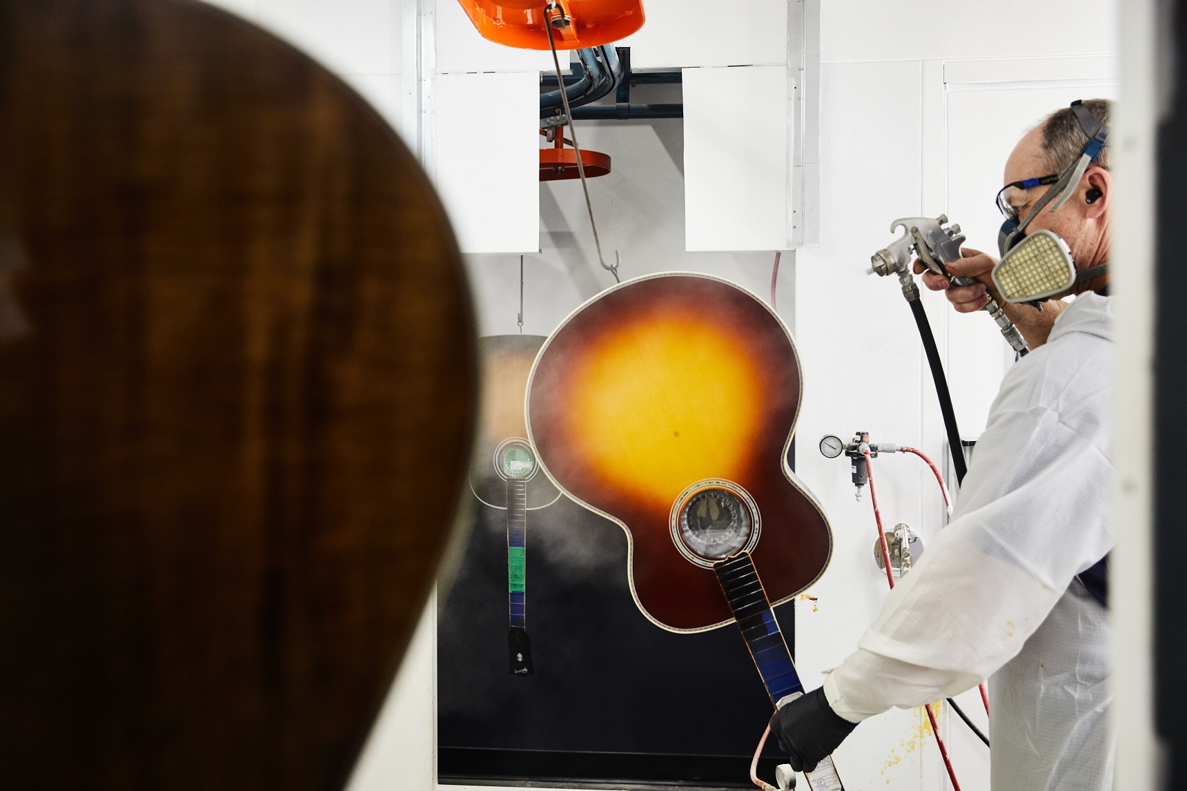 アコースティックギターの製造工程の中で一番時間を要する工程が塗装です。