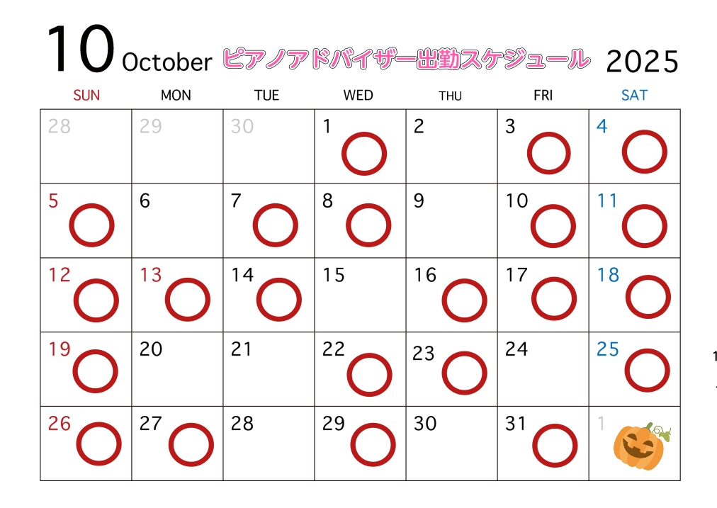 ピアノアドバイザー出勤スケジュール