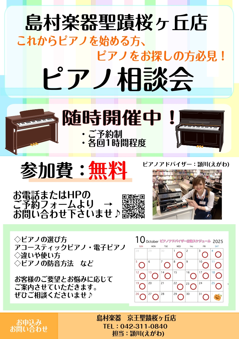 ![CONTENTSピアノ選びに関するお悩みございませんか?イベント詳細お問い合わせピアノ選びに関するお悩みございませんか? 皆さんこんにちは!島村楽器聖蹟桜ヶ丘店 ピアノ担当の頴川(えがわ)です♪ ピアノをお選びになる際にこんなお悩みございませんか? ピアノを始めたけど、どんなピアノを選んだらいいか分 […]](https://www.shimamura.co.jp/shop/seisekisakuragaoka/wp-content/uploads/sites/200/2024/12/20250127-d979bf0120fb2101f37e05470d978518.png)