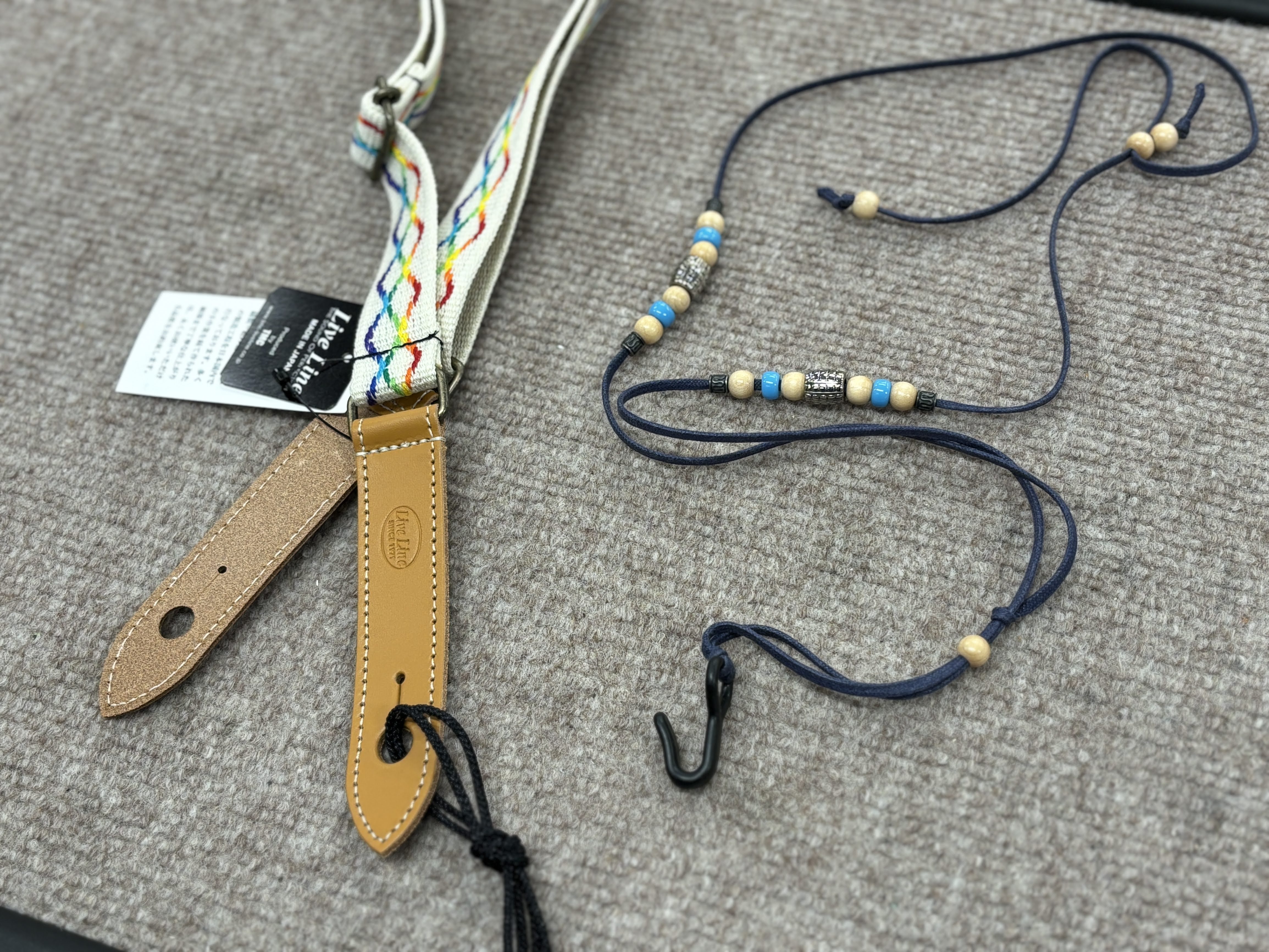 ストラップピンの取付と一緒に、お好きなデザインのウクレレストラップもご案内しています。