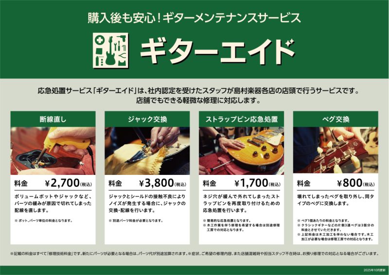 【ギター】突然のトラブルでお困りの方へ。「ギターエイド」の受付始めました!京王聖蹟桜ヶ丘店