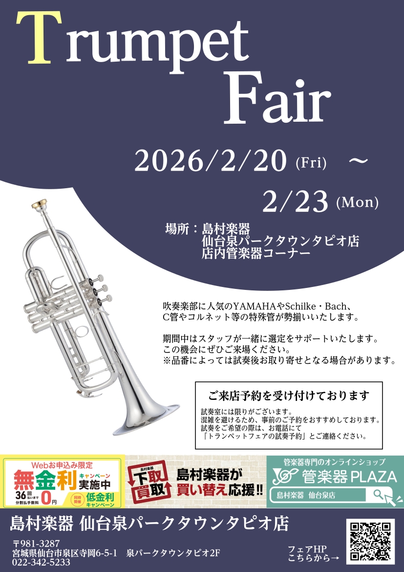 トランペットフェア開催!2026年2月20日(金)~2月23日(日)in仙台泉パークタウンタピオ店