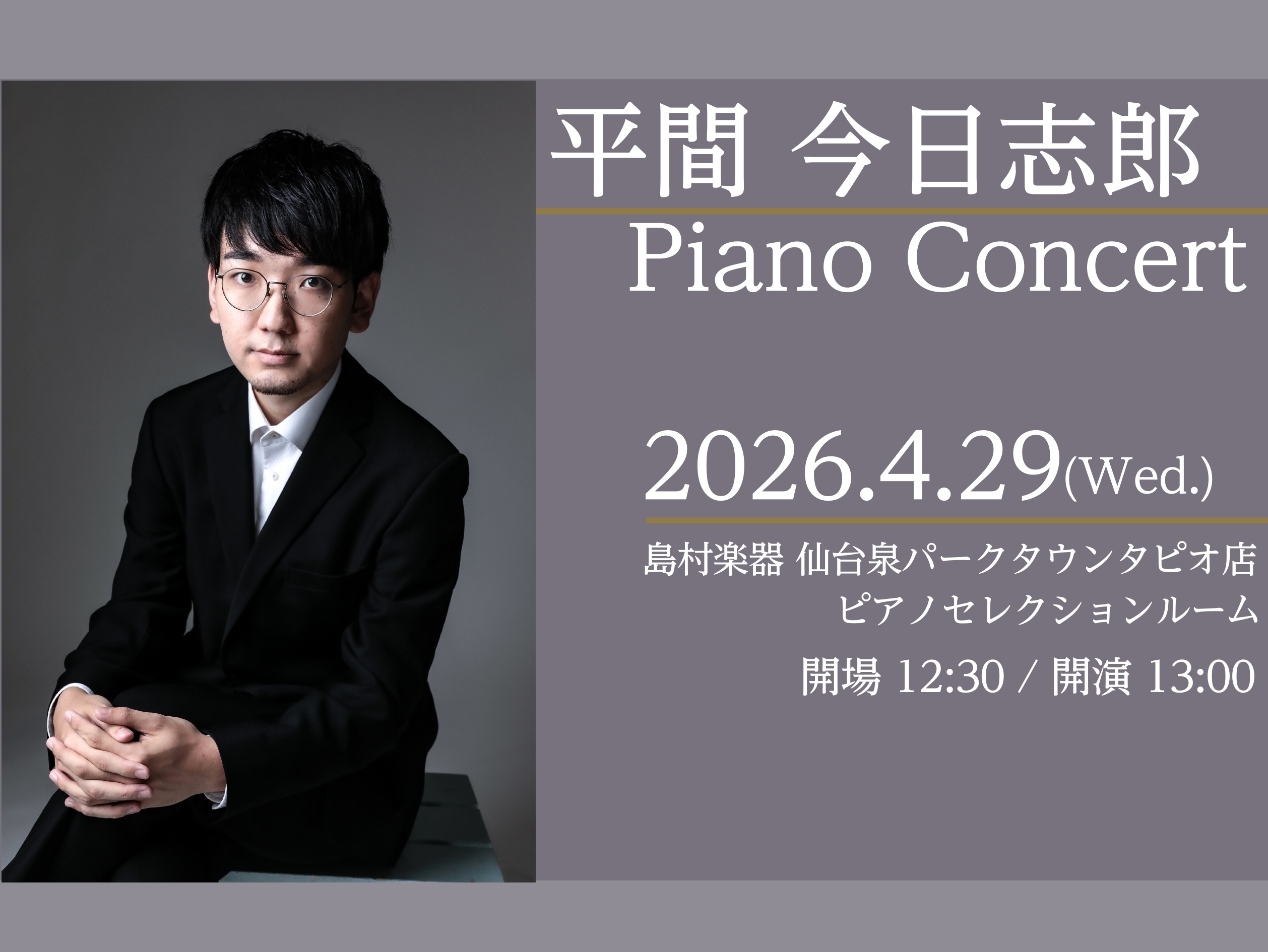 2026年4月29日(水・祝) 平間今日志郎 ピアノコンサート