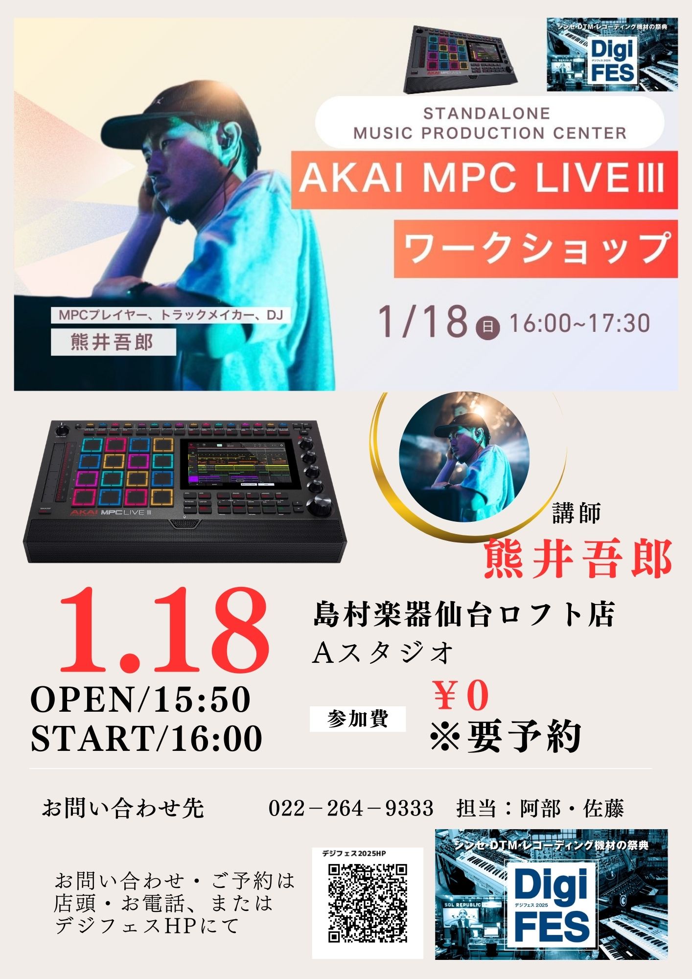 【2026年1月18日(日)熊井吾郎 AKAI MPC LIVEⅢ ワークショップ開催!