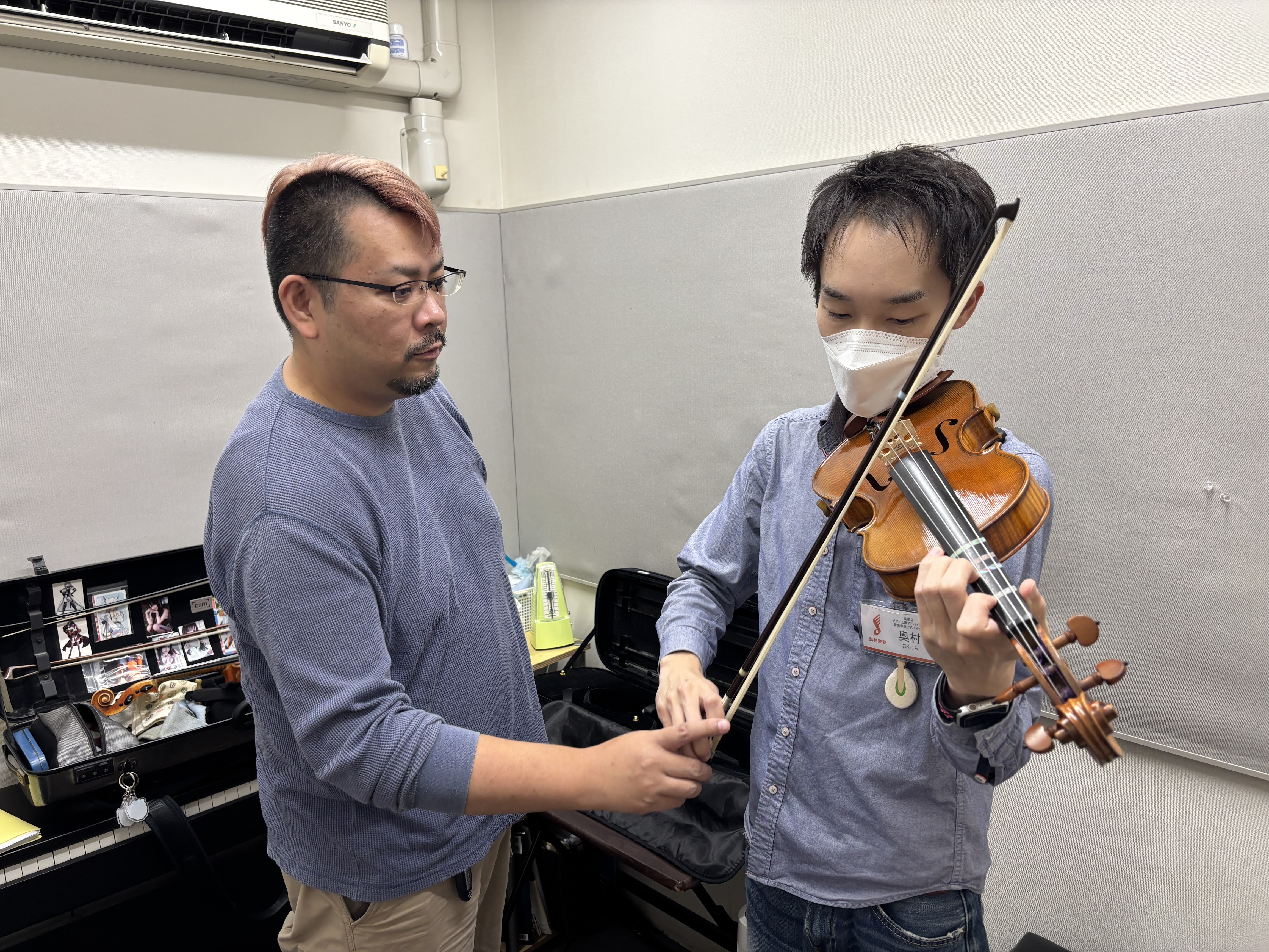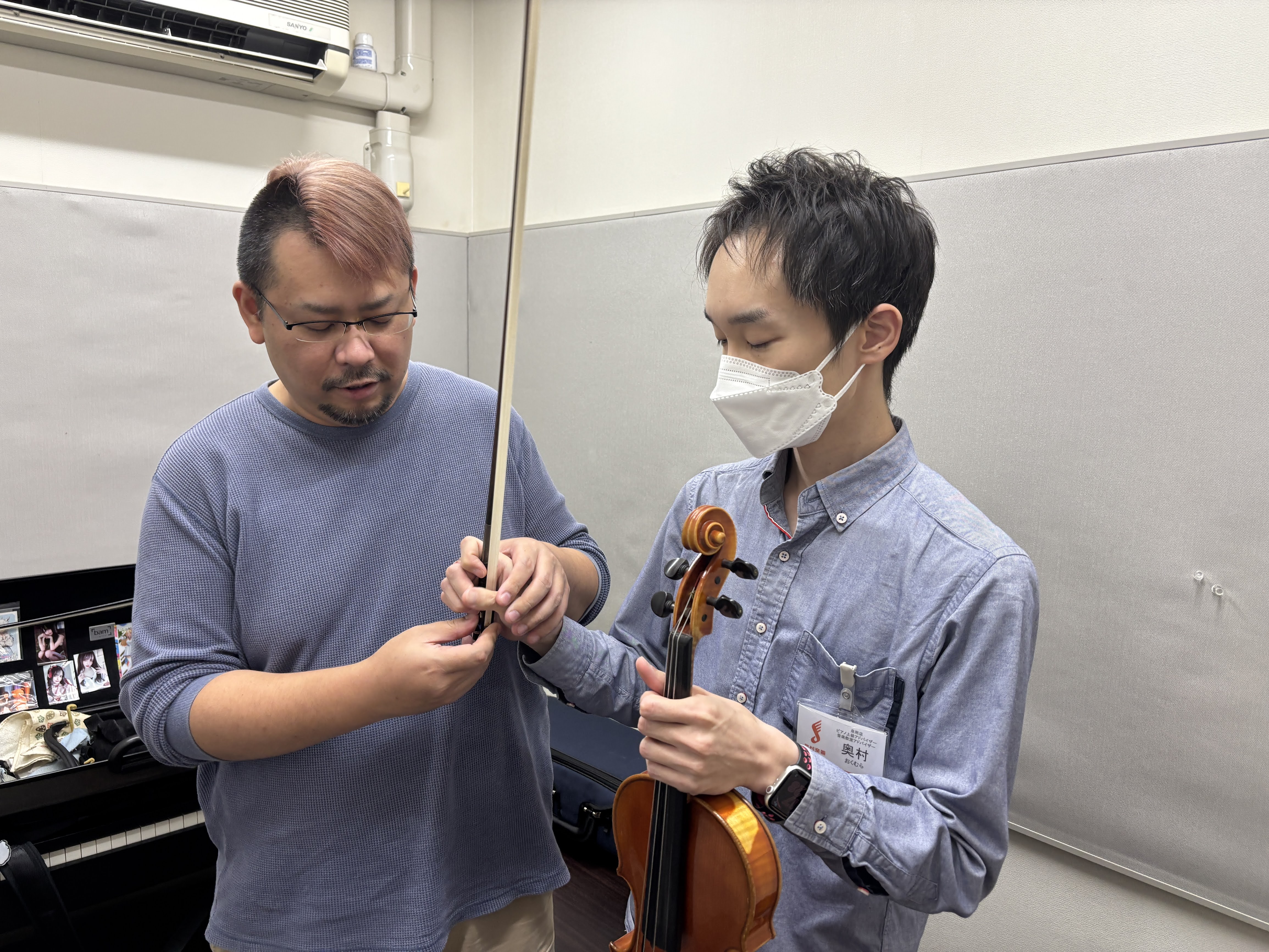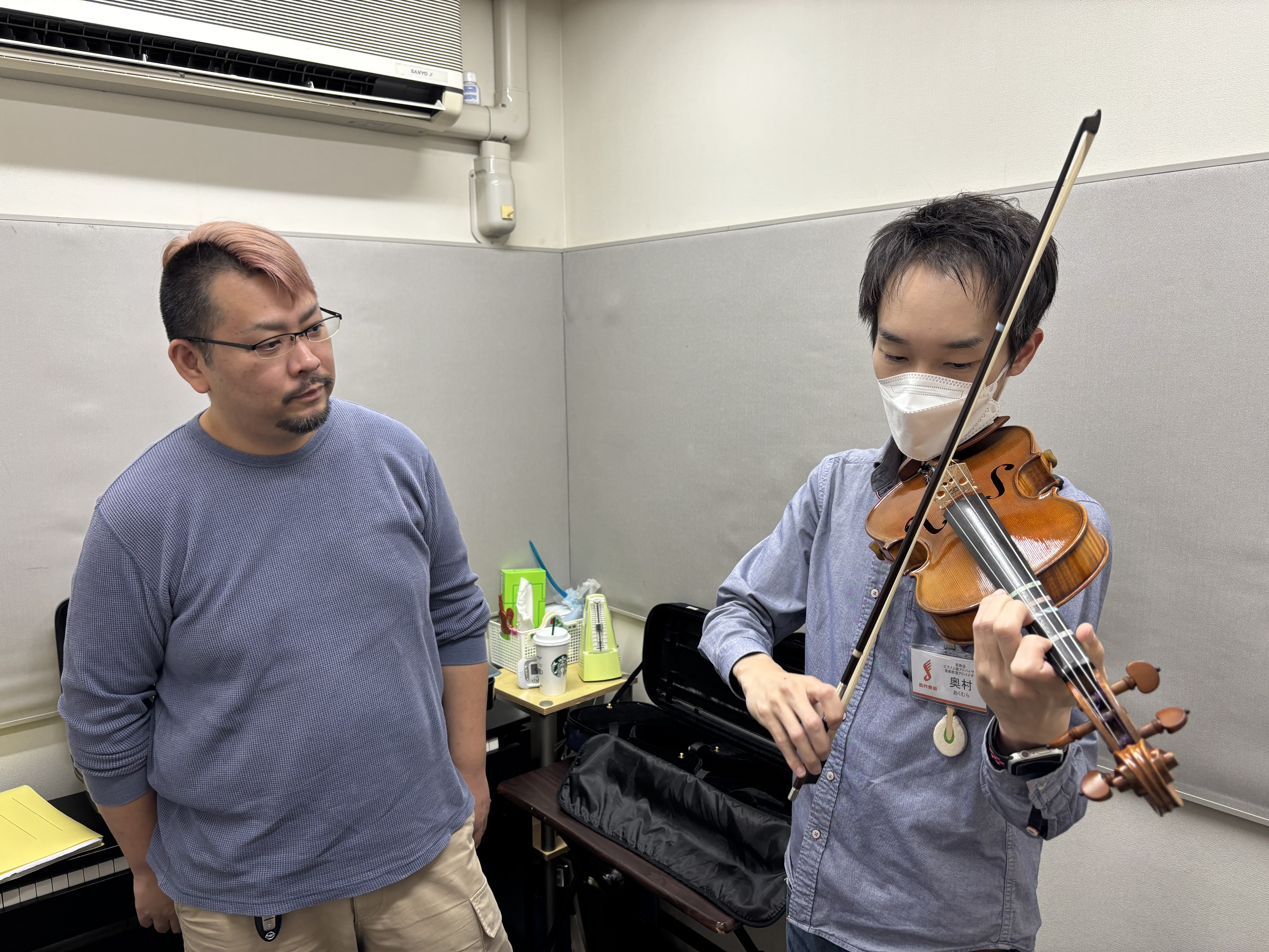 上村先生のレッスンは息抜きで楽しいお話などもしつつ、ヴァイオリンを構えると熱血指導していただけるので見ている私もすっごく楽しかったです!初心者の方でも安心してレッスンを受けていただけます(^^)