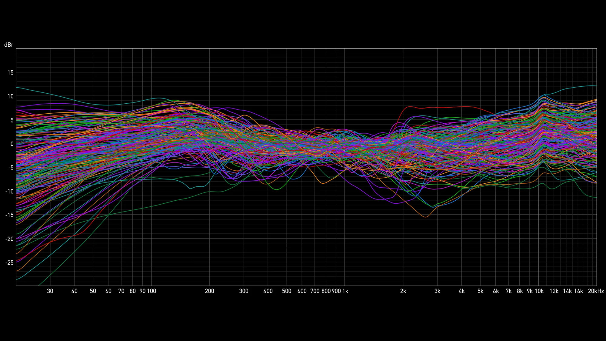 IK Multimedia がヘッドホンの周波数特性を計測した結果を表したグラフが↑。
