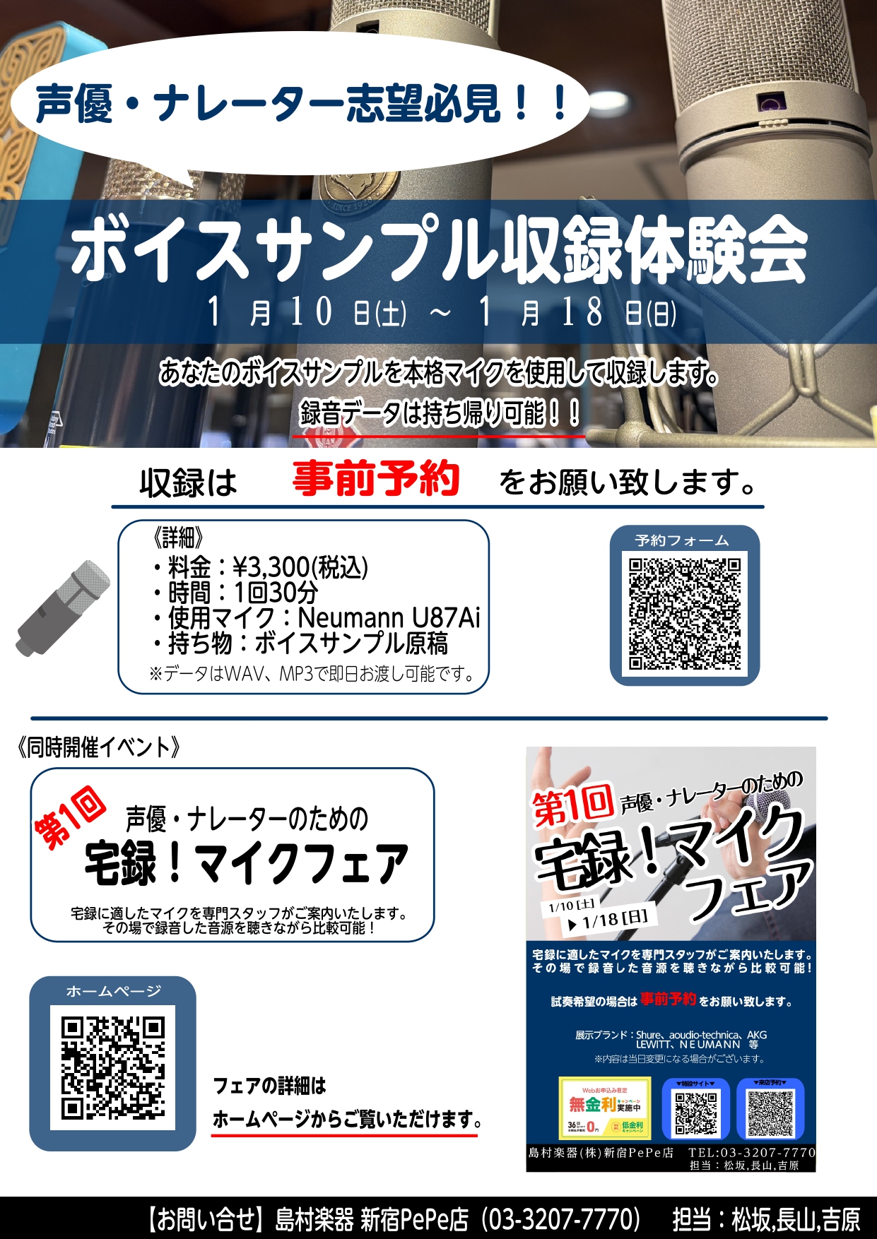 CONTENTS試奏・来店予約はこちらから!【同時開催イベント】声優・ナレーター志望必見!!ボイスサンプル収録体験会展示ラインナップご決済方法のご案内無金利キャンペーン大好評開催中!楽器の下取承ります!お問い合わせ試奏・来店予約はこちらから! 展示ラインナップに含まれていない商品の試奏をご希望の場合 […]