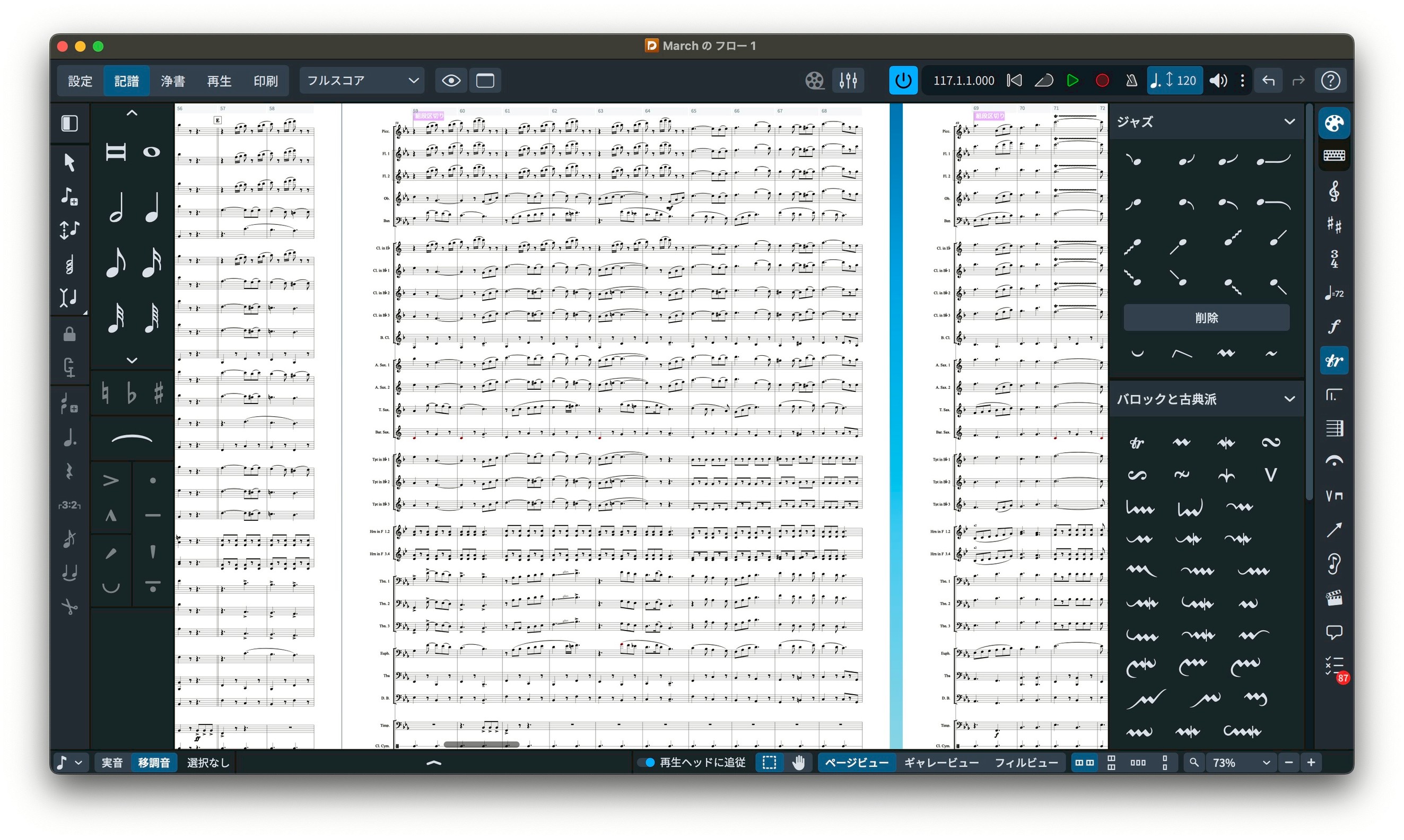 特にページ数の多いスコアや、人数の多いアンサンブル譜では、作業時間の短縮につながりやすくなります。