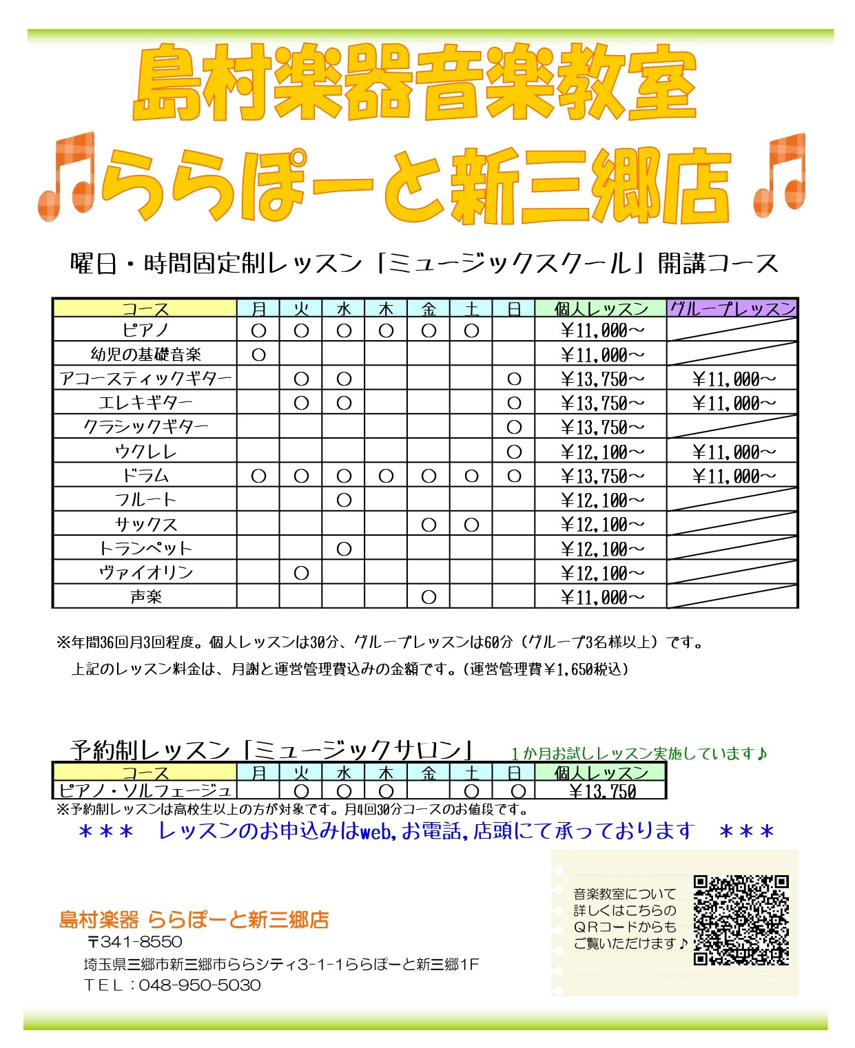 ららぽーと新三郷店 開講コース一覧