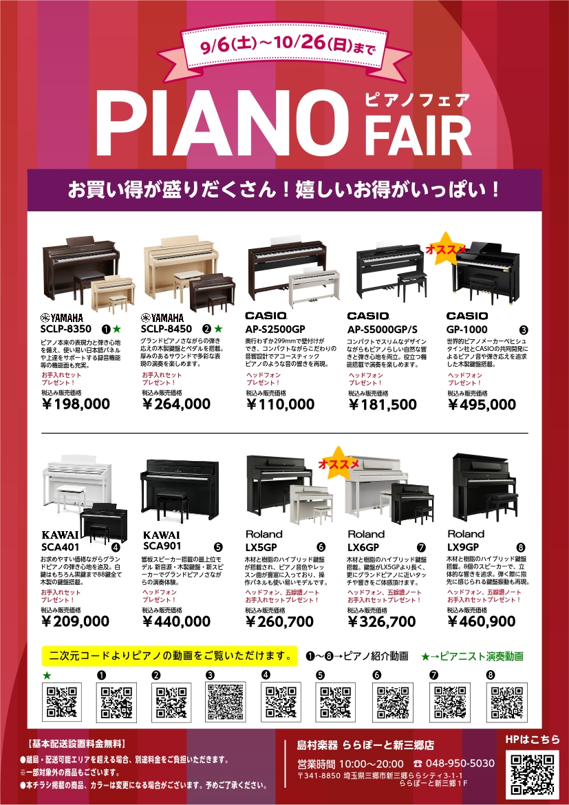 この度島村楽器ららぽーと新三郷店では「電子ピアノフェア」を開催中です!