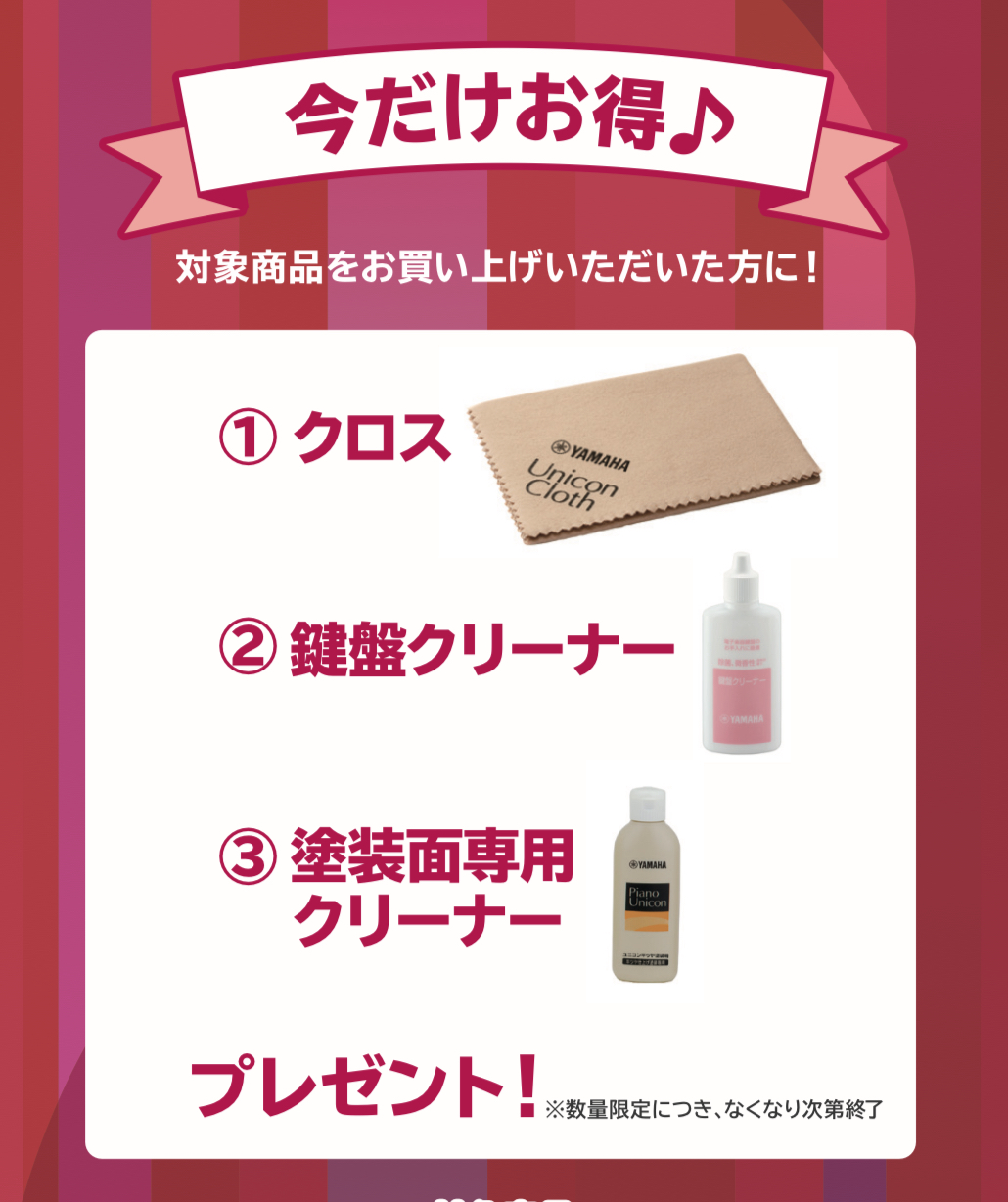 内容 | クロス・鍵盤クリーナー・塗装面専用クリーナー |