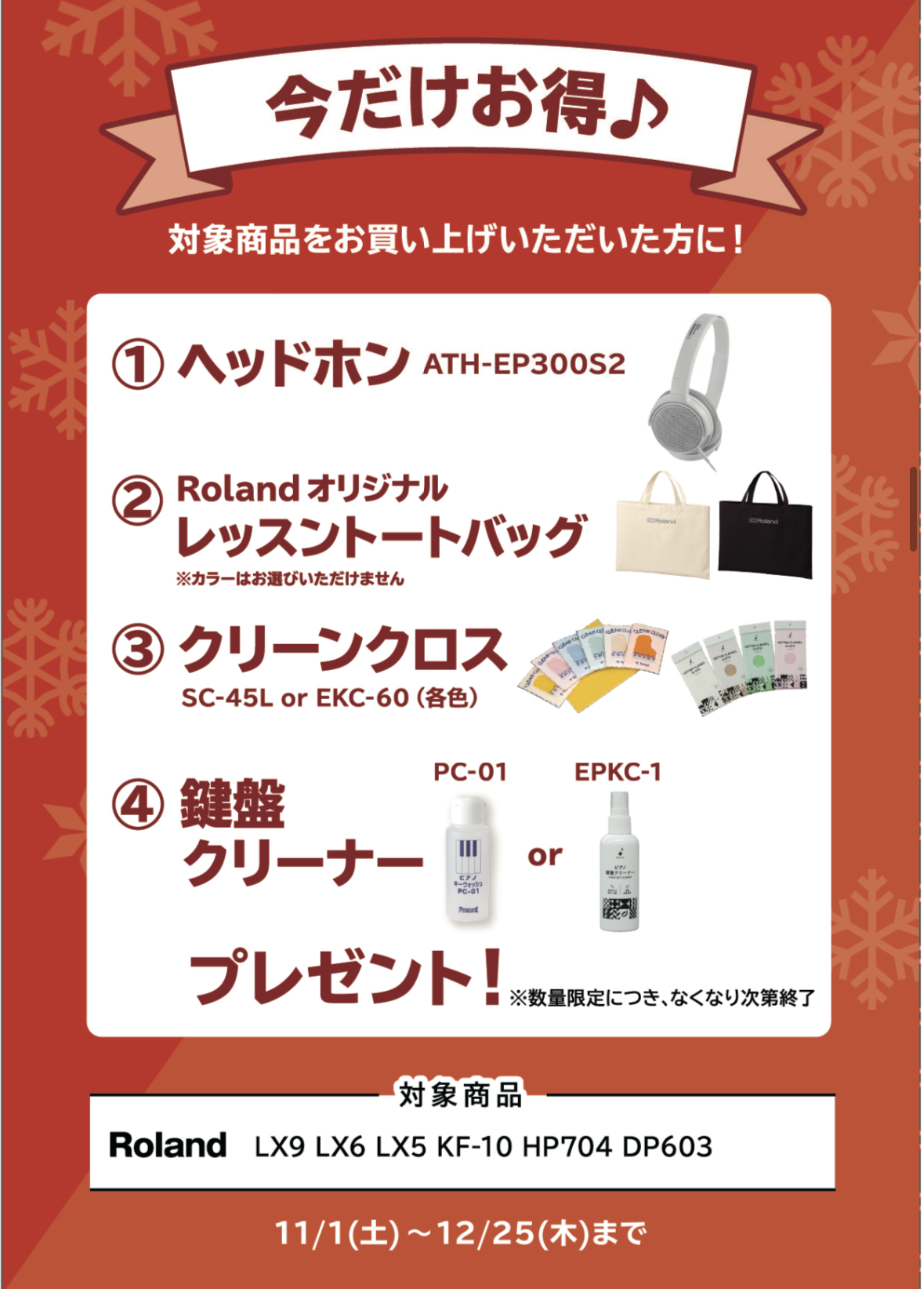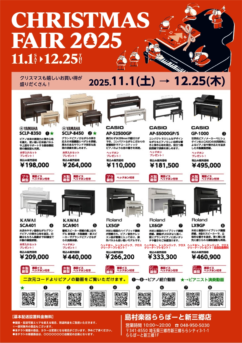 この度島村楽器ららぽーと新三郷店では「クリスマスピアノフェア」を開催中です!