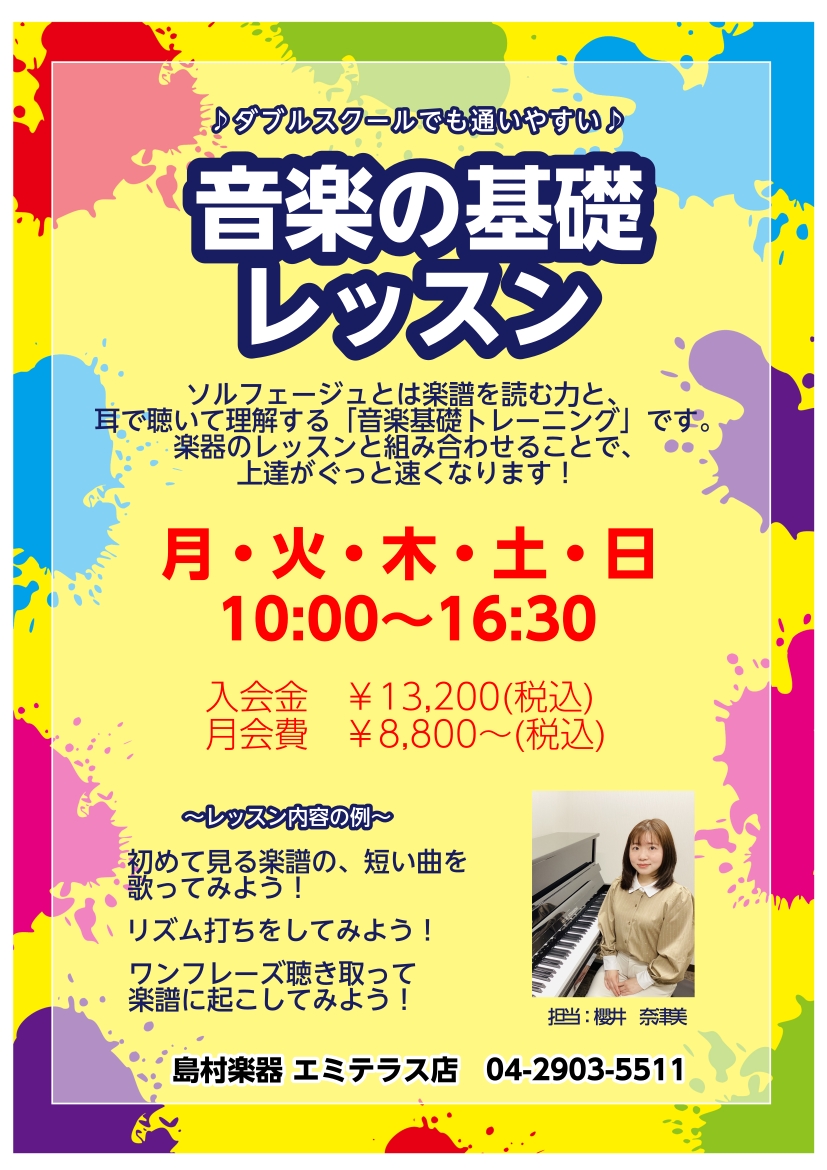 島村楽器エミテラス所沢店ソルフェージュサロンインストラクターの櫻井です。