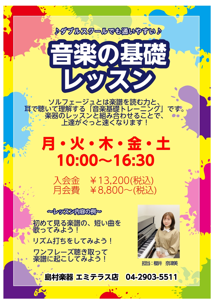 島村楽器エミテラス所沢店ソルフェージュサロンインストラクターの櫻井です。