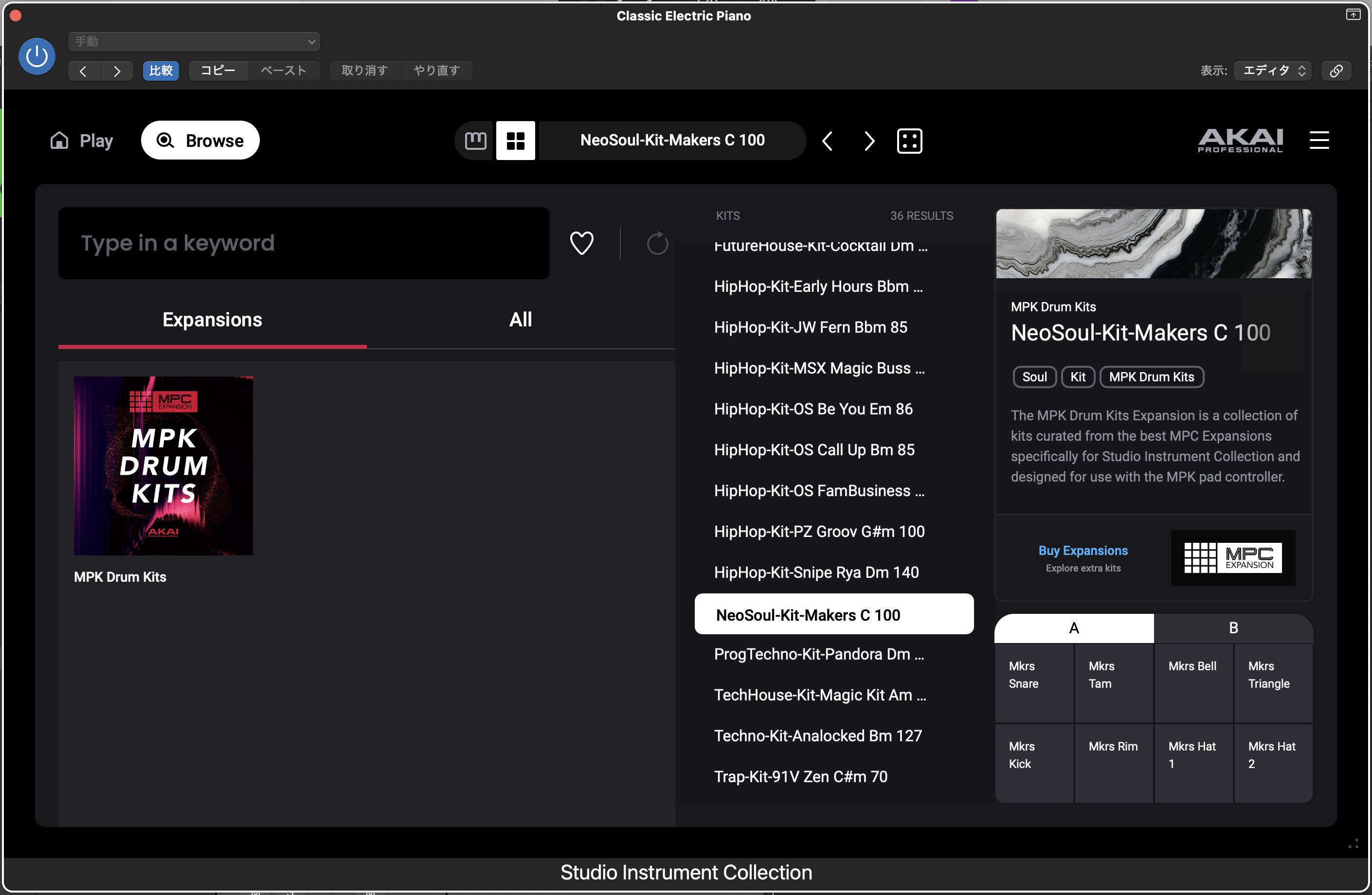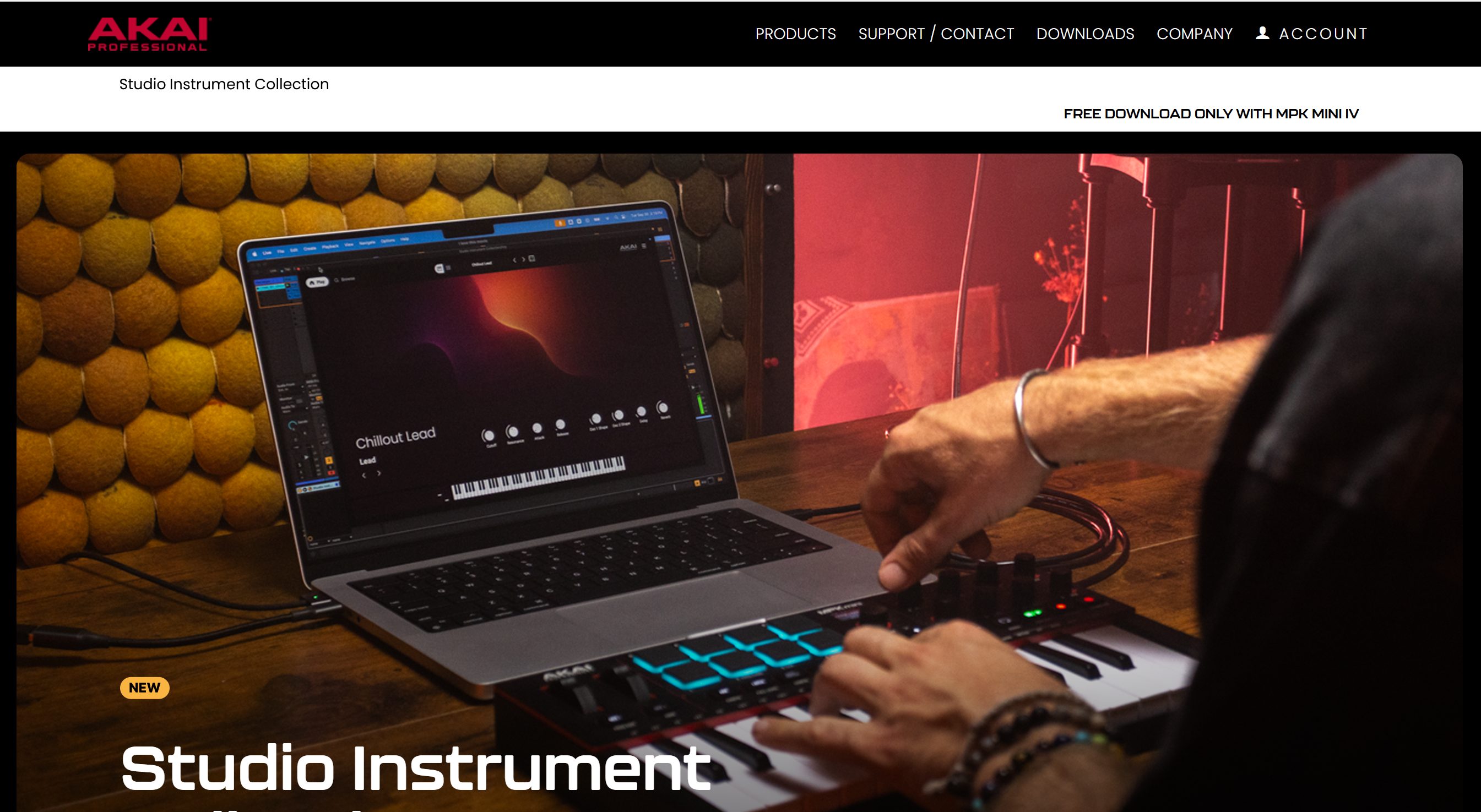 AKAIのWebページには、「FREE DOWNLOAD ONLY WITH MPK MINI IV」とあり、Studio Instrument CollectionはいまのところMPK mini Ⅳを購入することでのみ手に入る音源です。