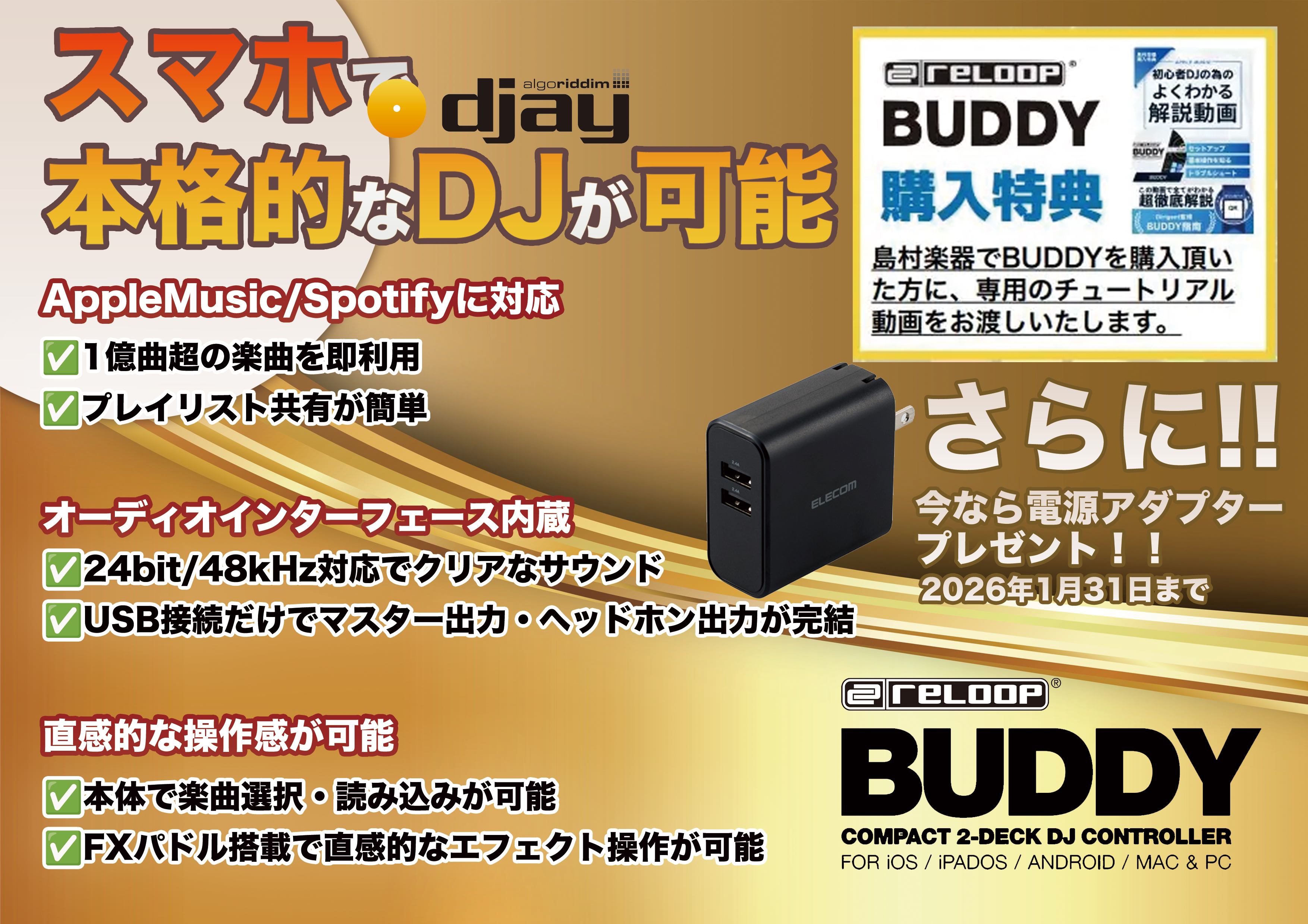 ![こんにちは。島村楽器エミテラス所沢店の小杉です。DJアプリ「djay」用のDJコントローラーのReloop BuddyがTraktor Play/Pro 4に対応しました!Traktor Playのみが対応だと思い、Traktor Pro 4を持っているのにTraktor Playを購入しましたが、 […]](https://www.shimamura.co.jp/shop/shintokorozawa/wp-content/uploads/sites/26/2025/11/20251126-2510-traktor-play-2560-1.jpg)