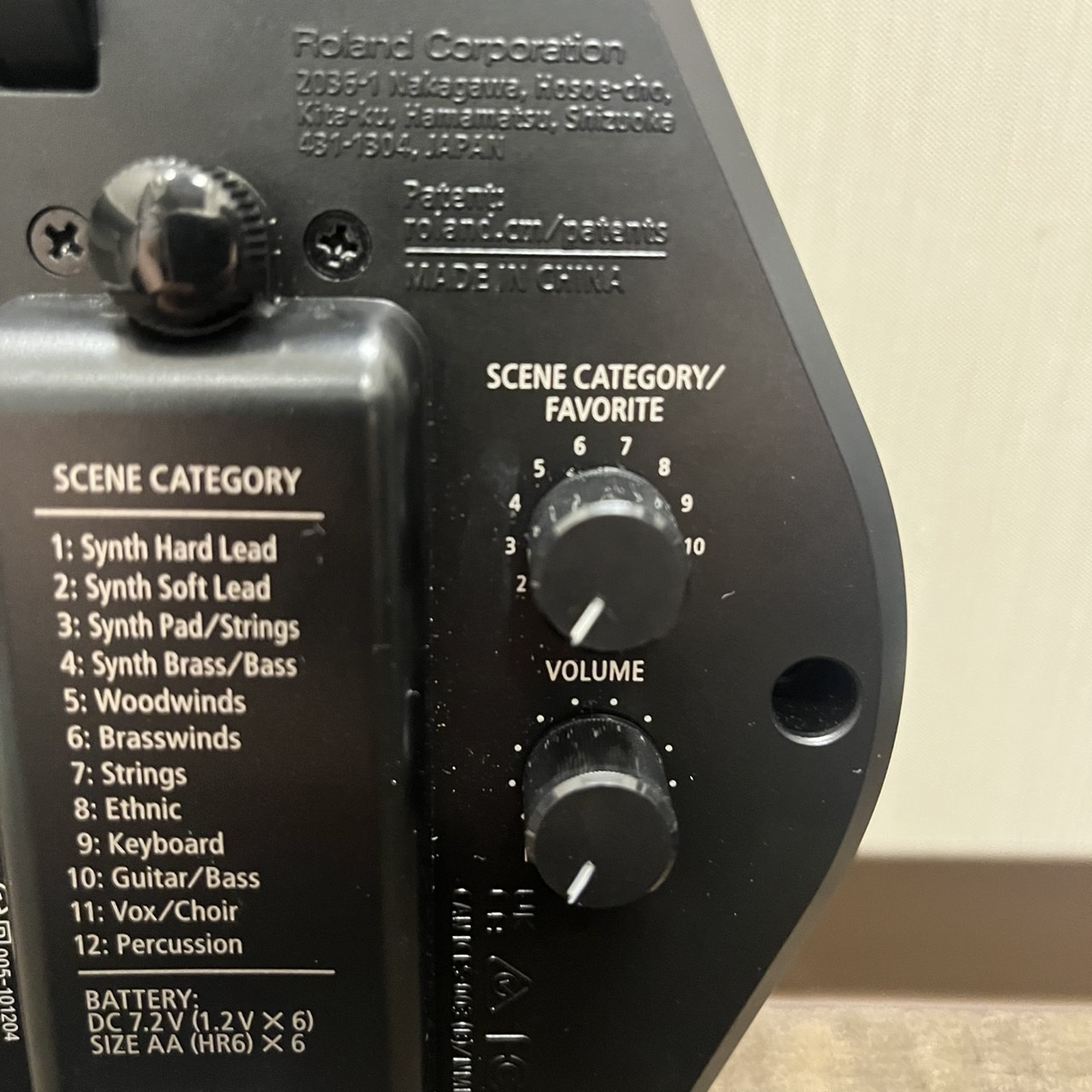 裏面のつまみには、【上】シンセカテゴリー・【下】ボリュームが調整できるようになっております。