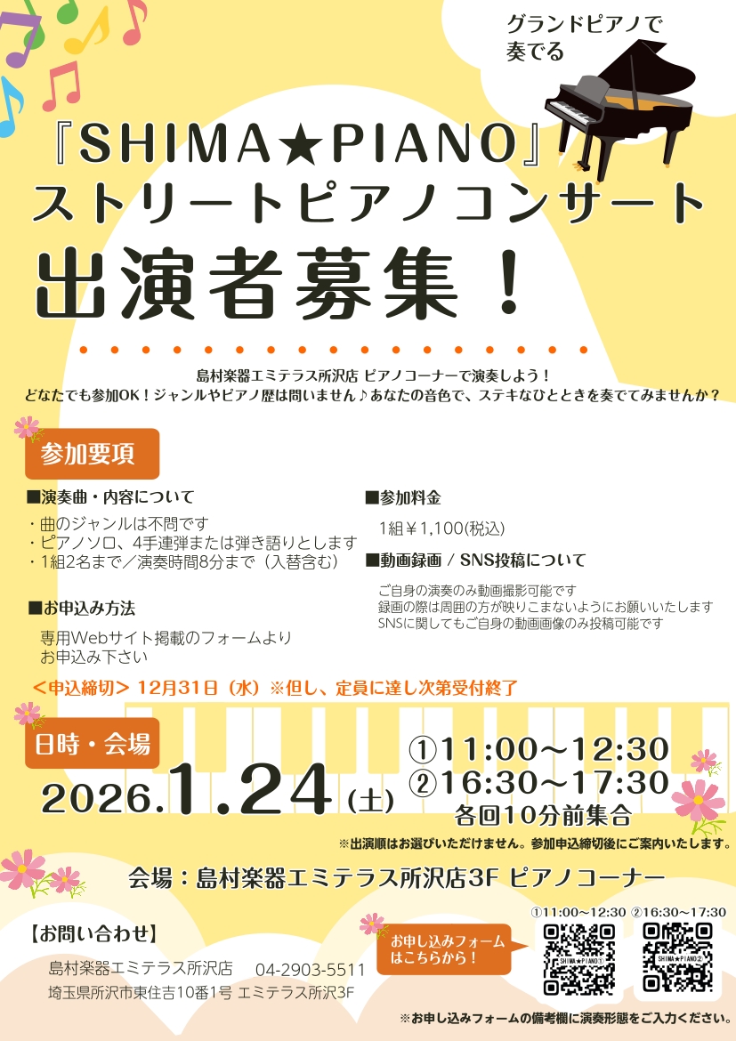| 会場 | 島村楽器エミテラス所沢店3F ピアノコーナー |