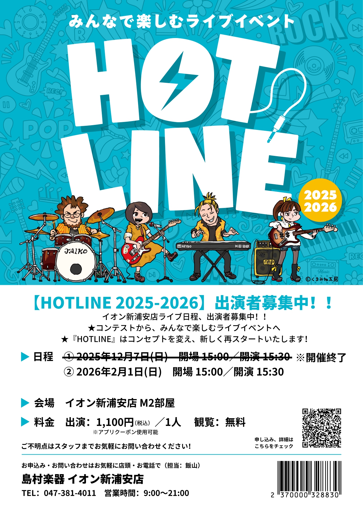 【HOTLINE 2025-2026】イオン新浦安店ライブ日程、出演者募集中!!