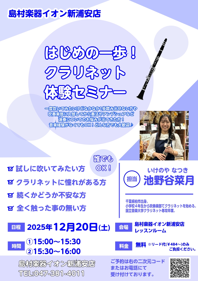 初心者さん向け【クラリネット体験セミナー】定期開催中!2025年12月開催日程のご案内