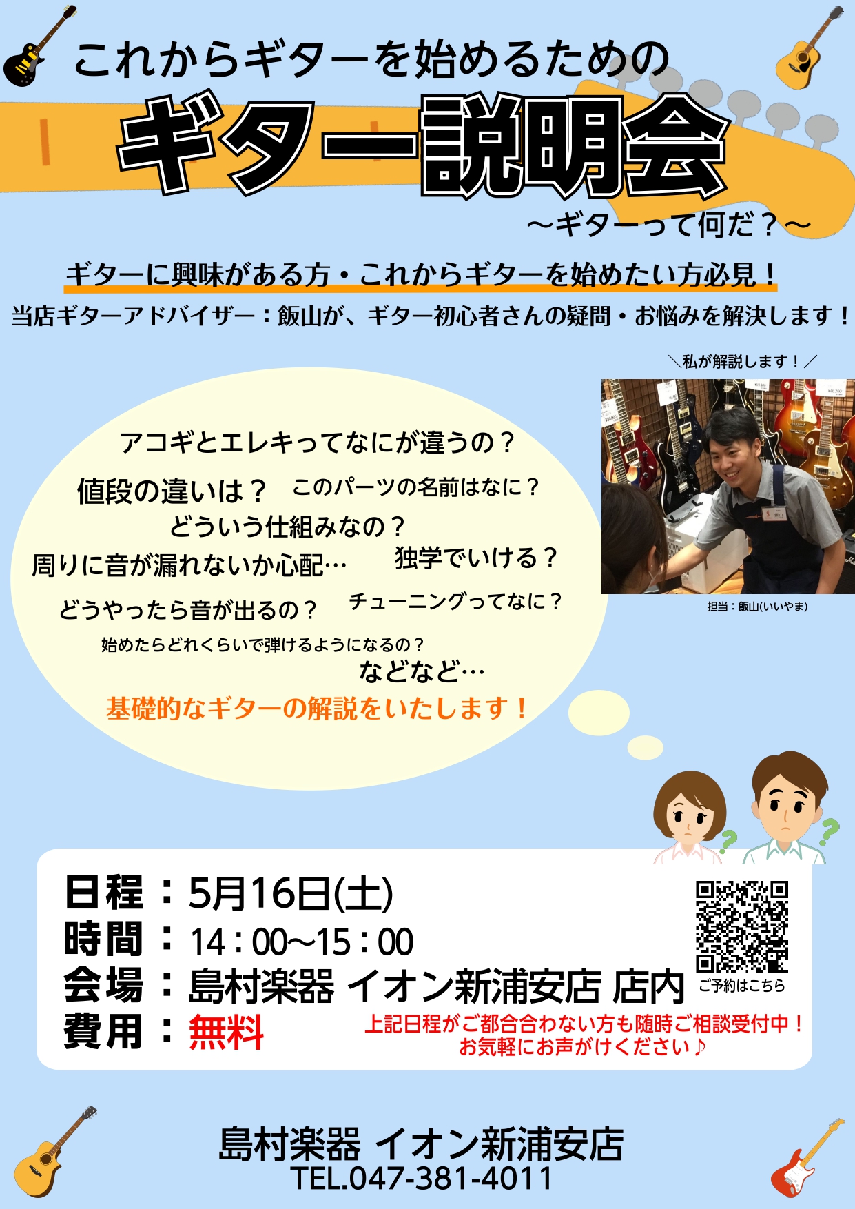 【ギター説明会】開催! これからギターを始める方サポートいたします!5/16(土)14:00~