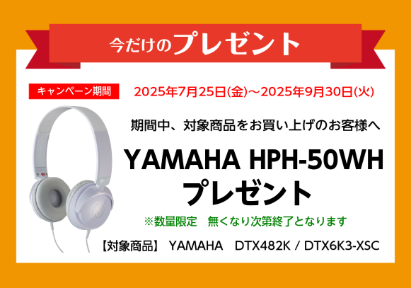 ヤマハの電子ドラム「DTX482K」「DTX6K3-XSC」をお求めのお客様へ、数量限定でヘッドホンのプレゼントをさせていただきます!