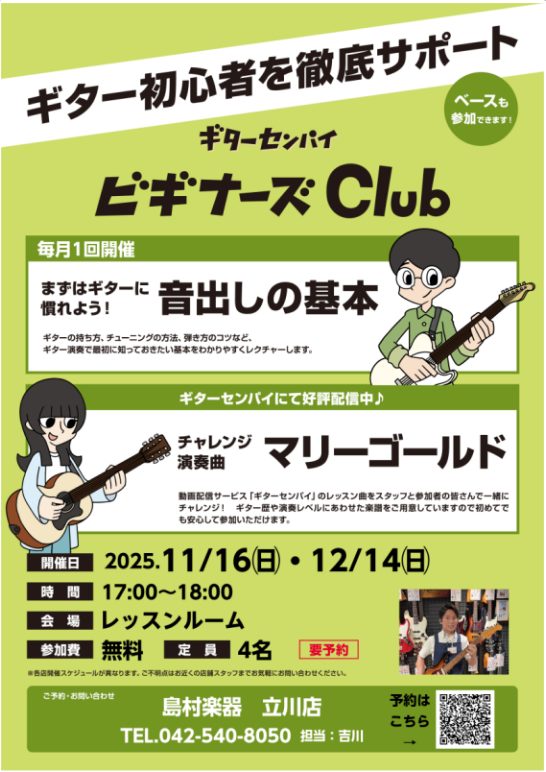 島村楽器立川店ではギター・ベースを始めて間もない初心者の方向けのイベントを開催しております。