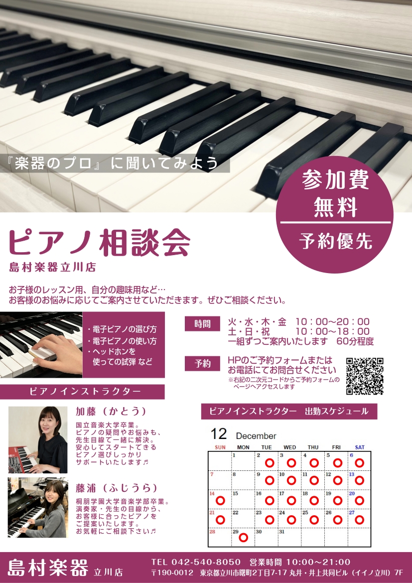 島村楽器立川店ではピアノインストラクターによる「ピアノ選び相談会」を開催しております!