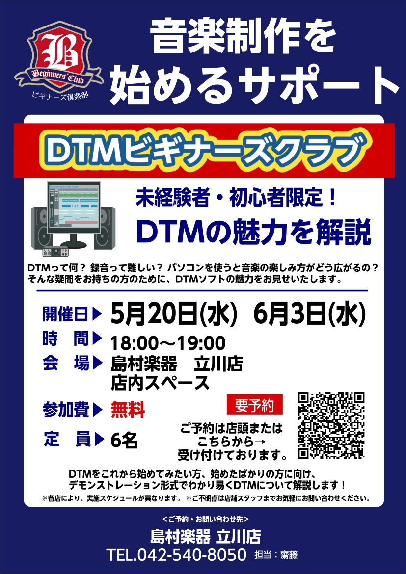 ![CONTENTSDTMビギナーズ倶楽部を開催します!そもそもDTMとは?DTMは難しいの?イベント詳細DTMビギナーズ倶楽部の応募申込み方法DTMサークル「Digiland CREATORS TACHIKAWA」島村楽器立川店 デジタル楽器コーナーDTMビギナーズ倶楽部を開催します! パソコンとDT […]](https://www.shimamura.co.jp/shop/tachikawa/wp-content/uploads/sites/194/2021/06/20210614-order_shima210614-0055_order_png.jpg)
