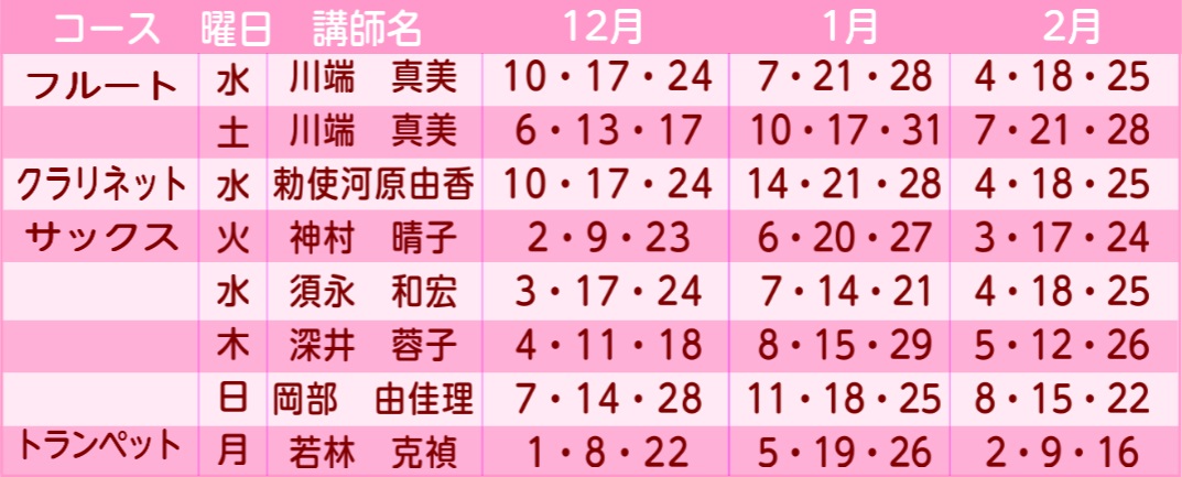 【冬の短期レッスン】楽器がはじめての方大歓迎!経験者のレベルアップにも!入会金不要の3回お試しレッスン♪